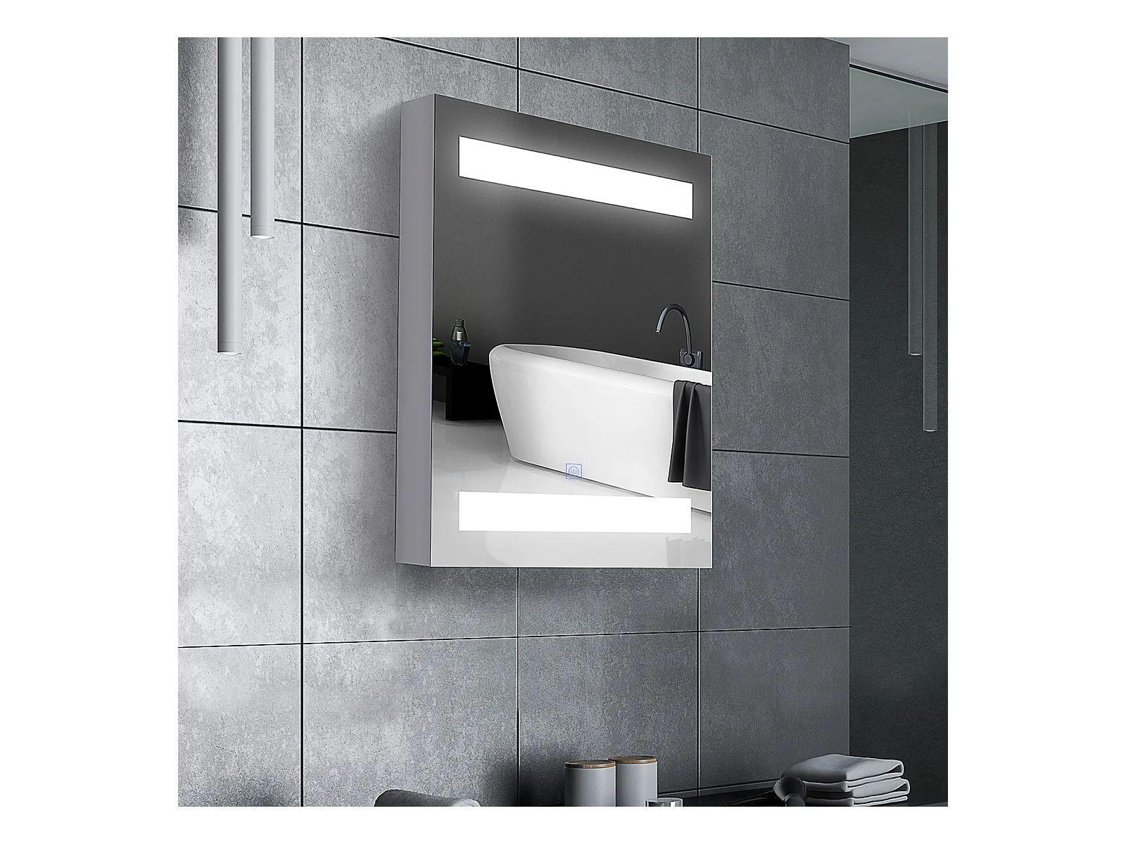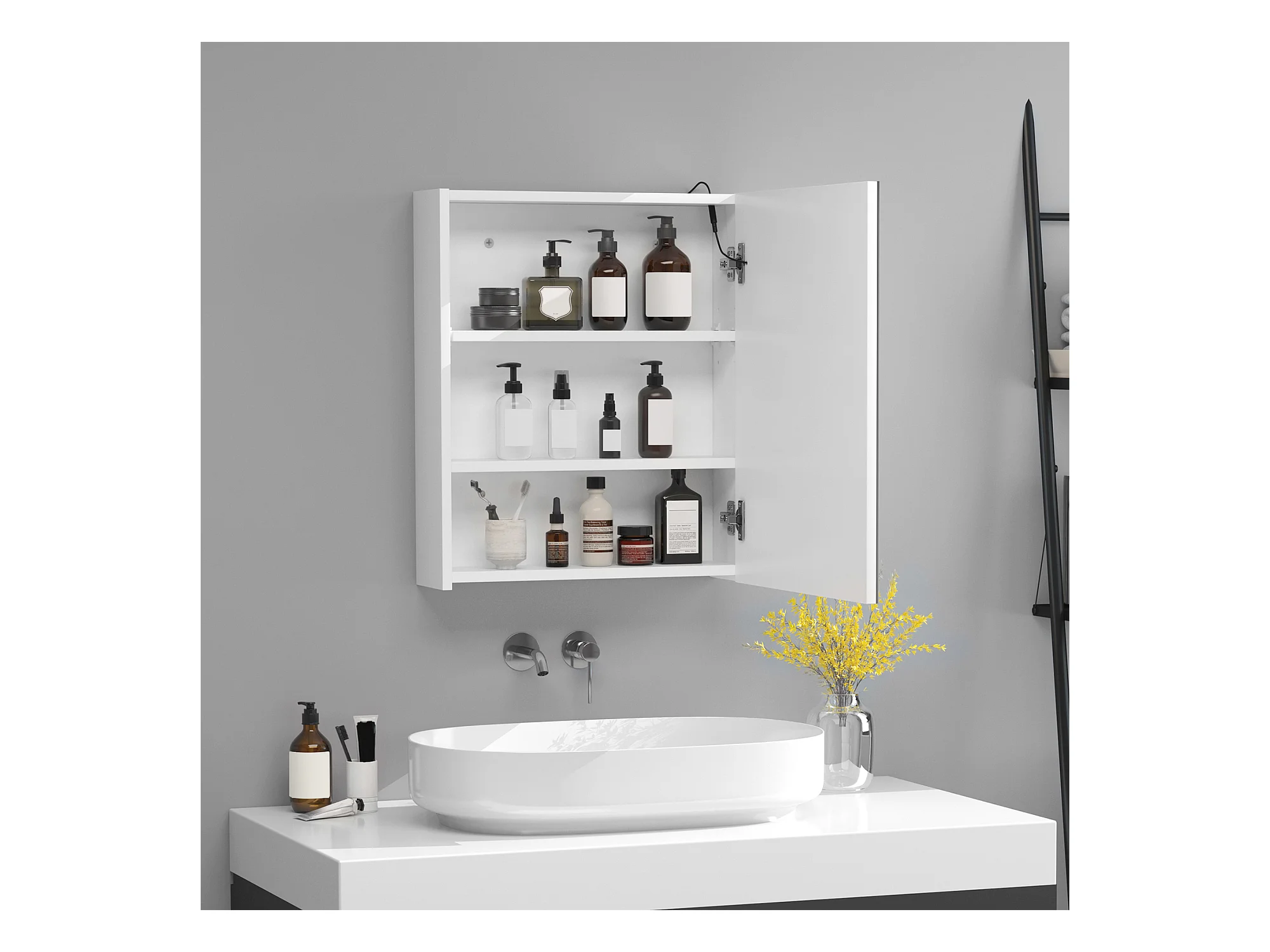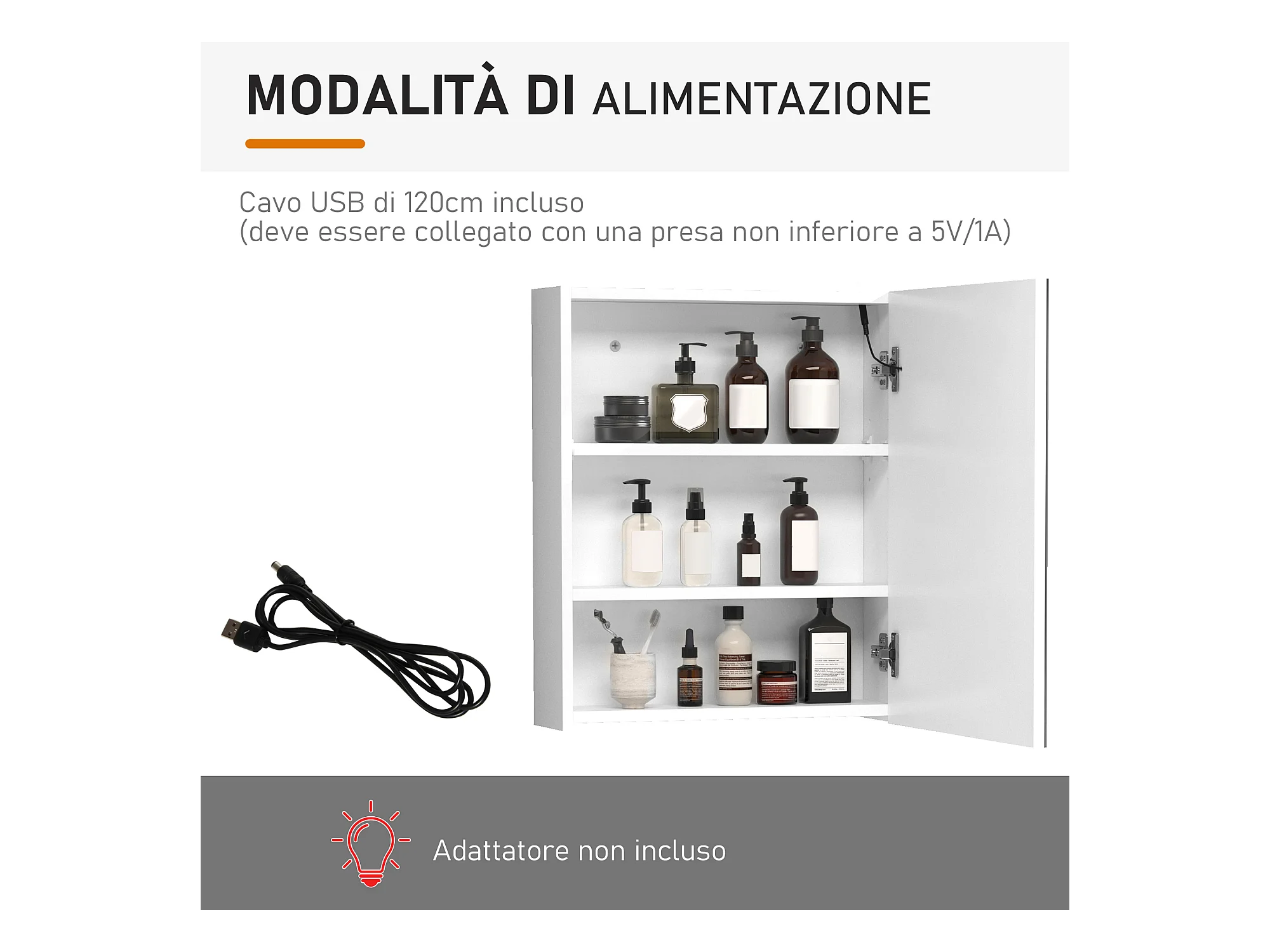 Armadietto pensile da bagno con 1 anta e luci a led in mdf bianco