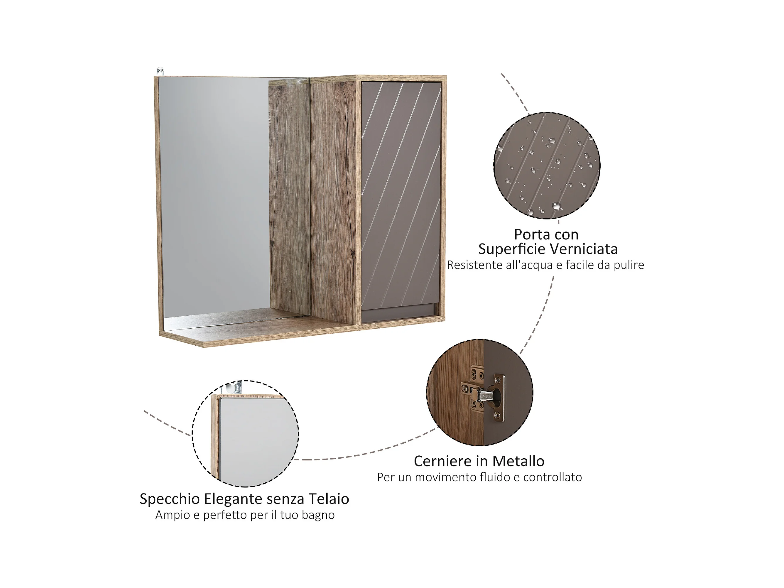 Mobile specchiera bagno a parete con anta e mensole in legno