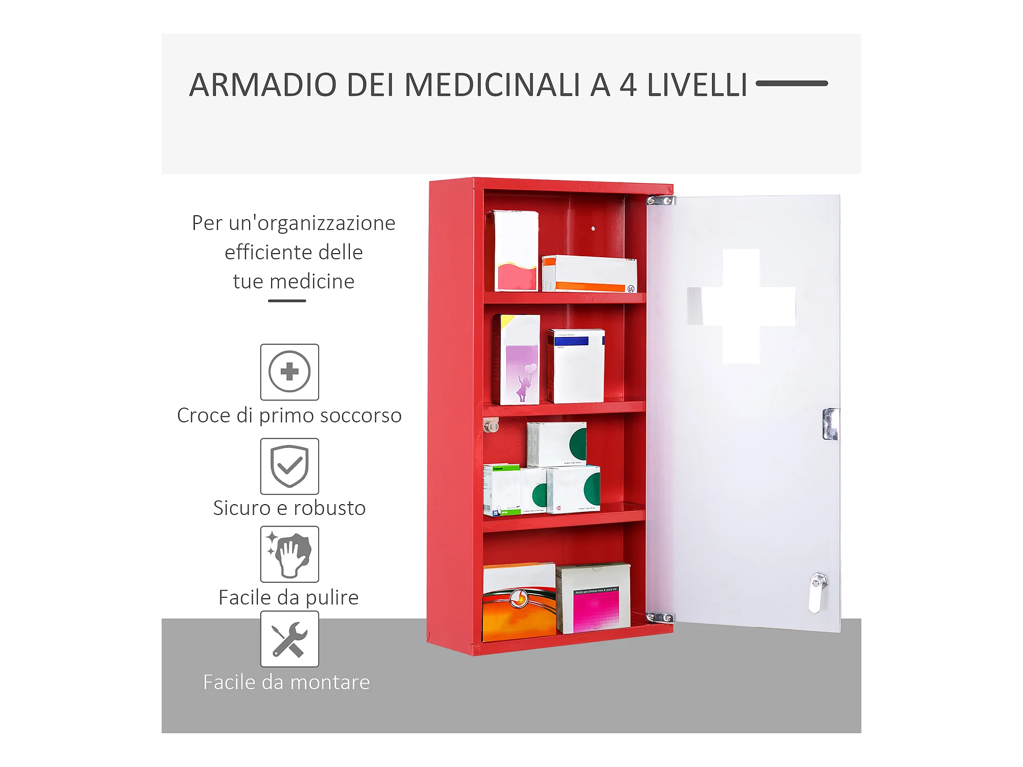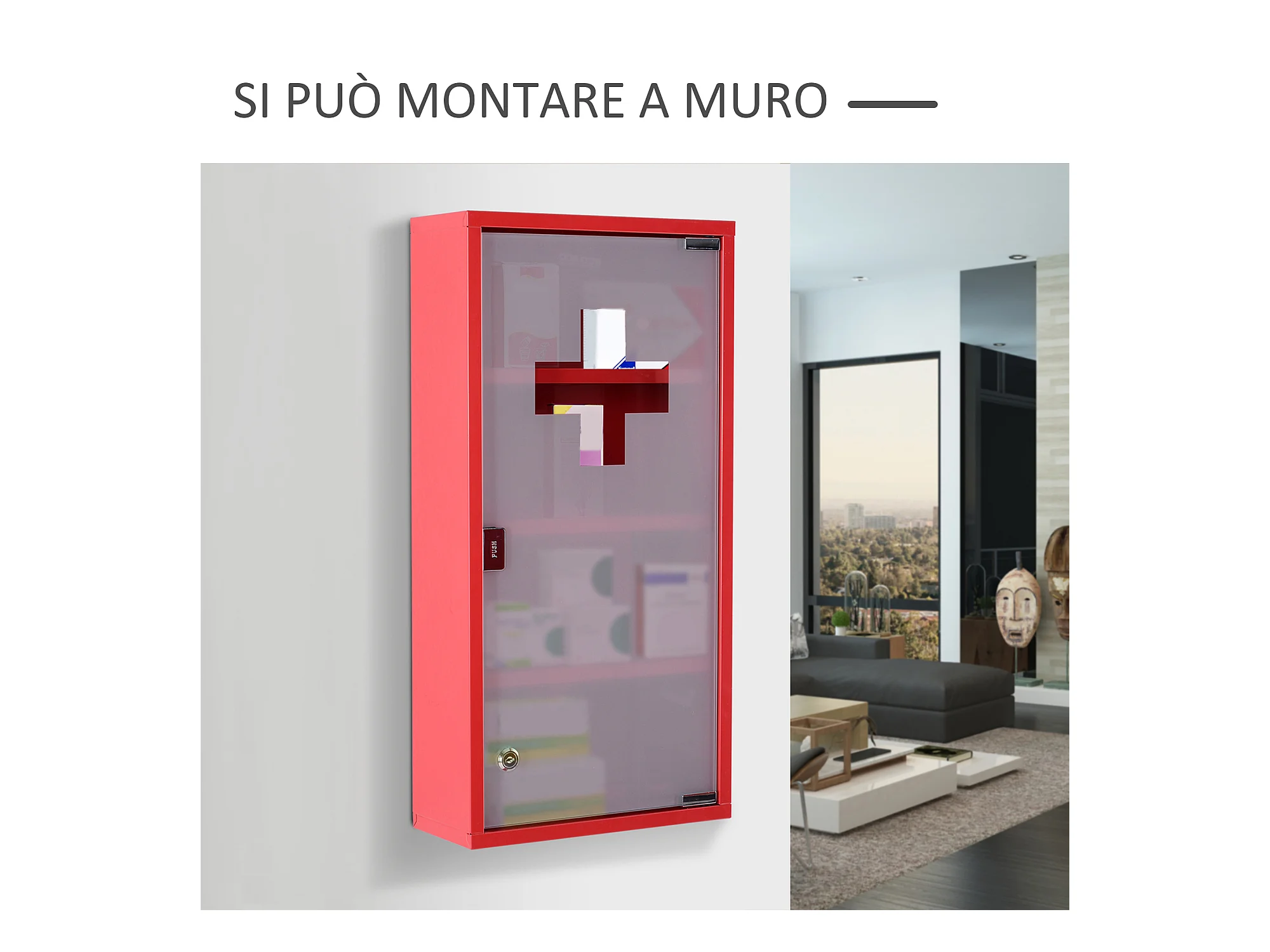 Armadietto per medicinali a 4 livelli con chiave e anta in vetro