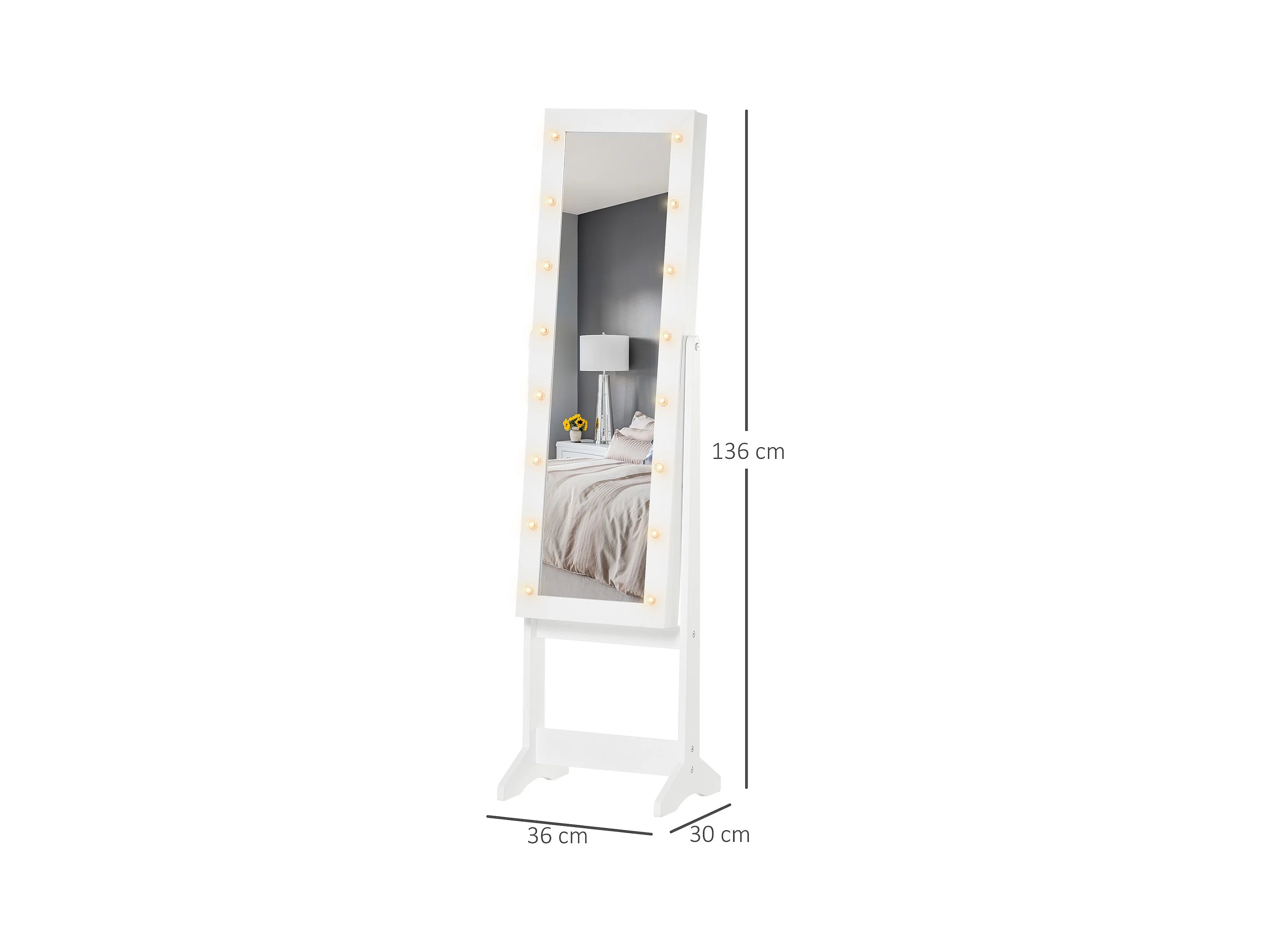 Armadietto portagioie con specchio regolabile e luci led bianco caldo