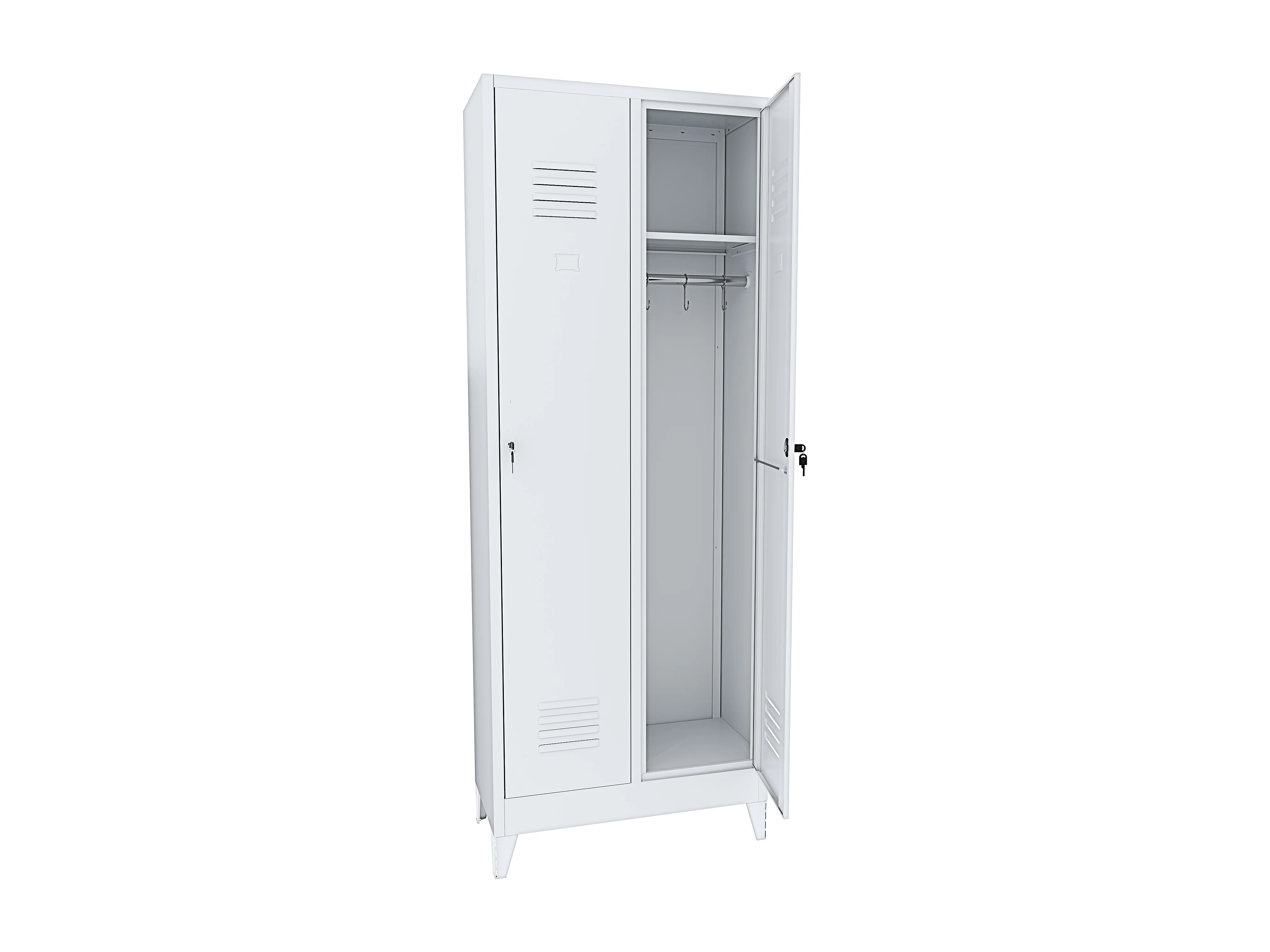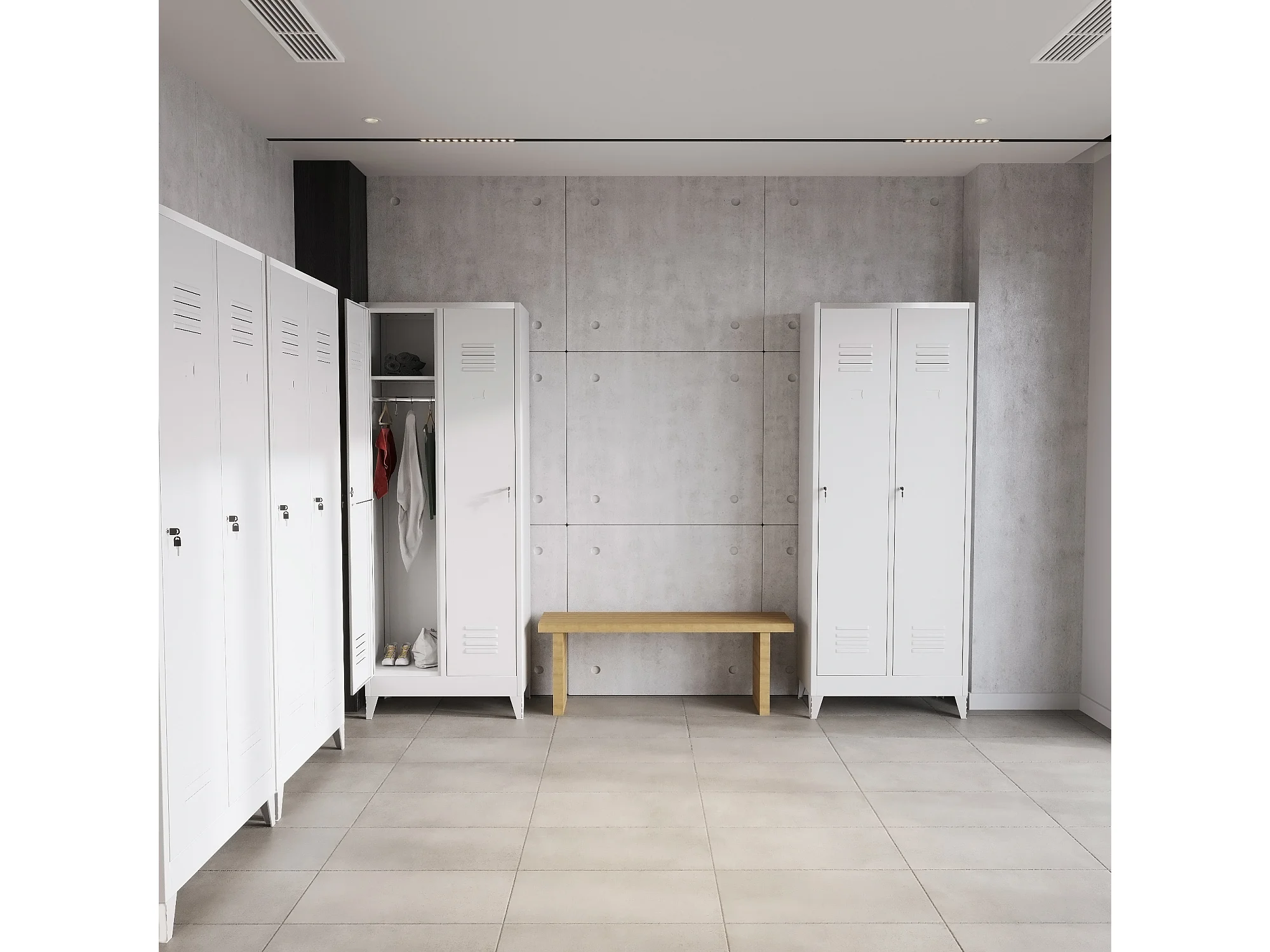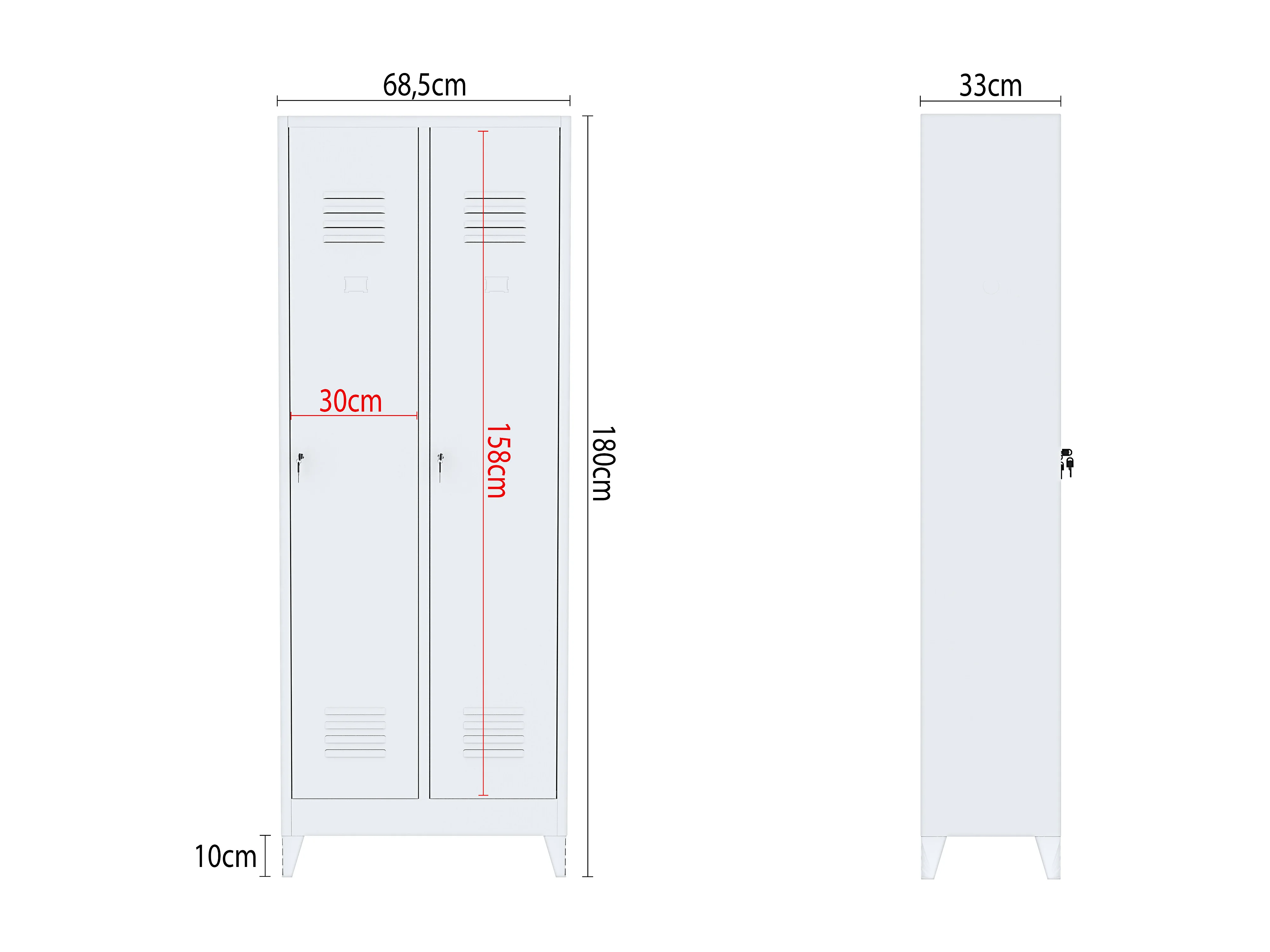 Armadietto Spogliatoio - 2 Posti in lamiera d'acciaio salvaspazio con chiave - Ripiano appendiabiti con ganci e porta cartellino - Per Interno, lavoro o piscina 180 x 33 x 68.5cm Grigio