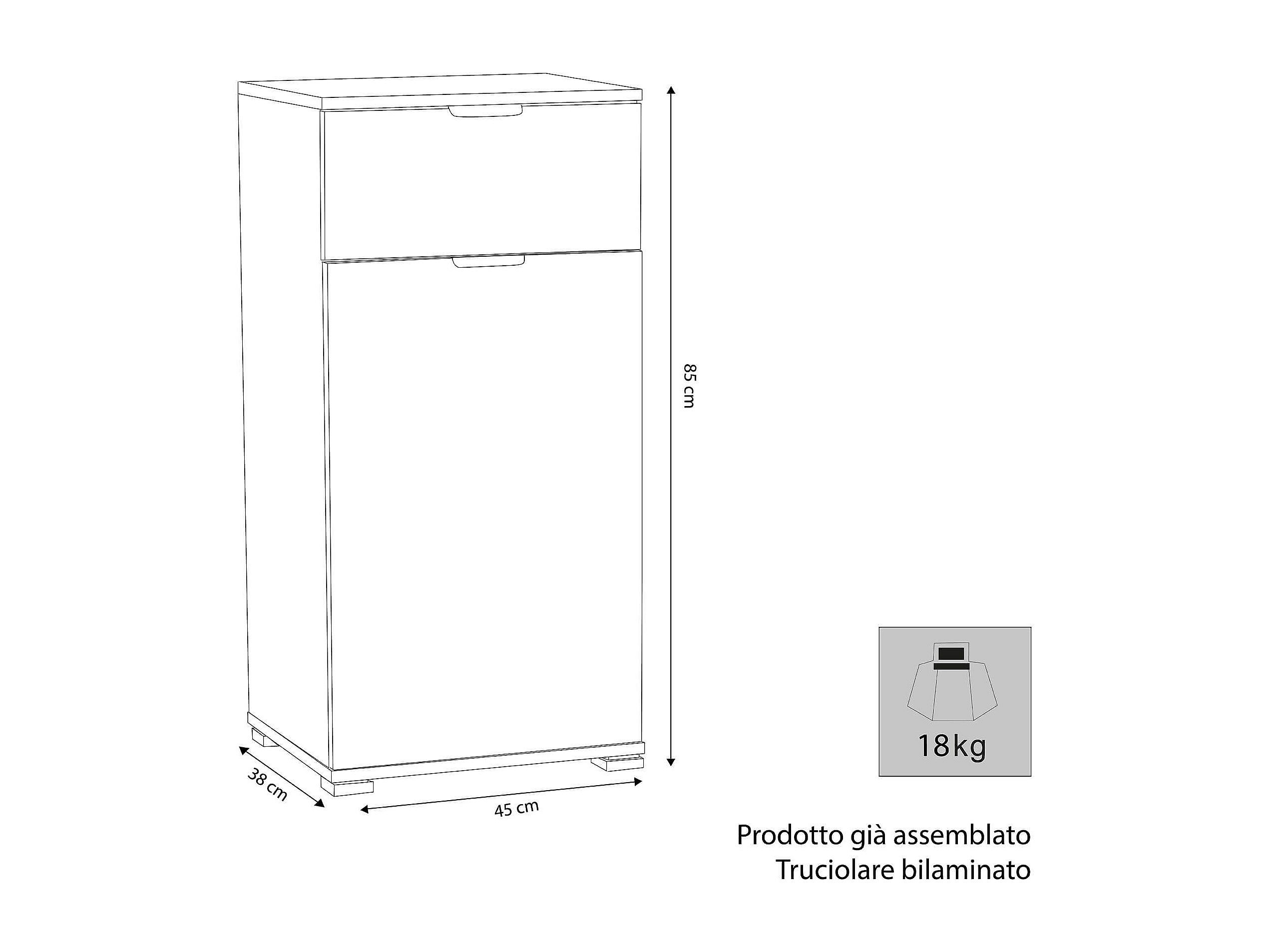 MilaniHome.it - armadietto un anta e un cassetto per soggiorno cucina bagno fatto in Italia cm 45x38x85 hdi coloreRovere grigio