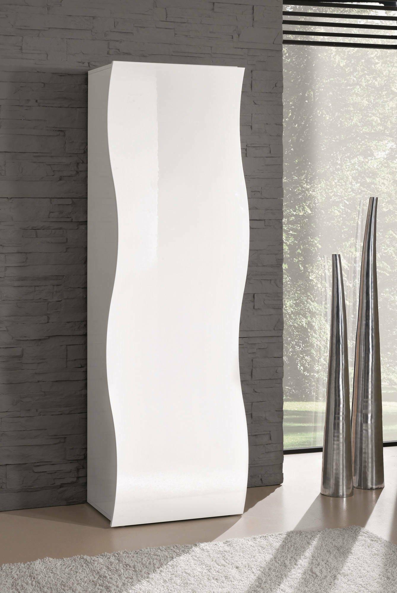 Armadio 1 anta Lorenzo, Portascarpe con 1 anta e 1 ripiano, Mobile multifunzione, 100% Made in Italy, cm 63x40h187, Bianco lucido