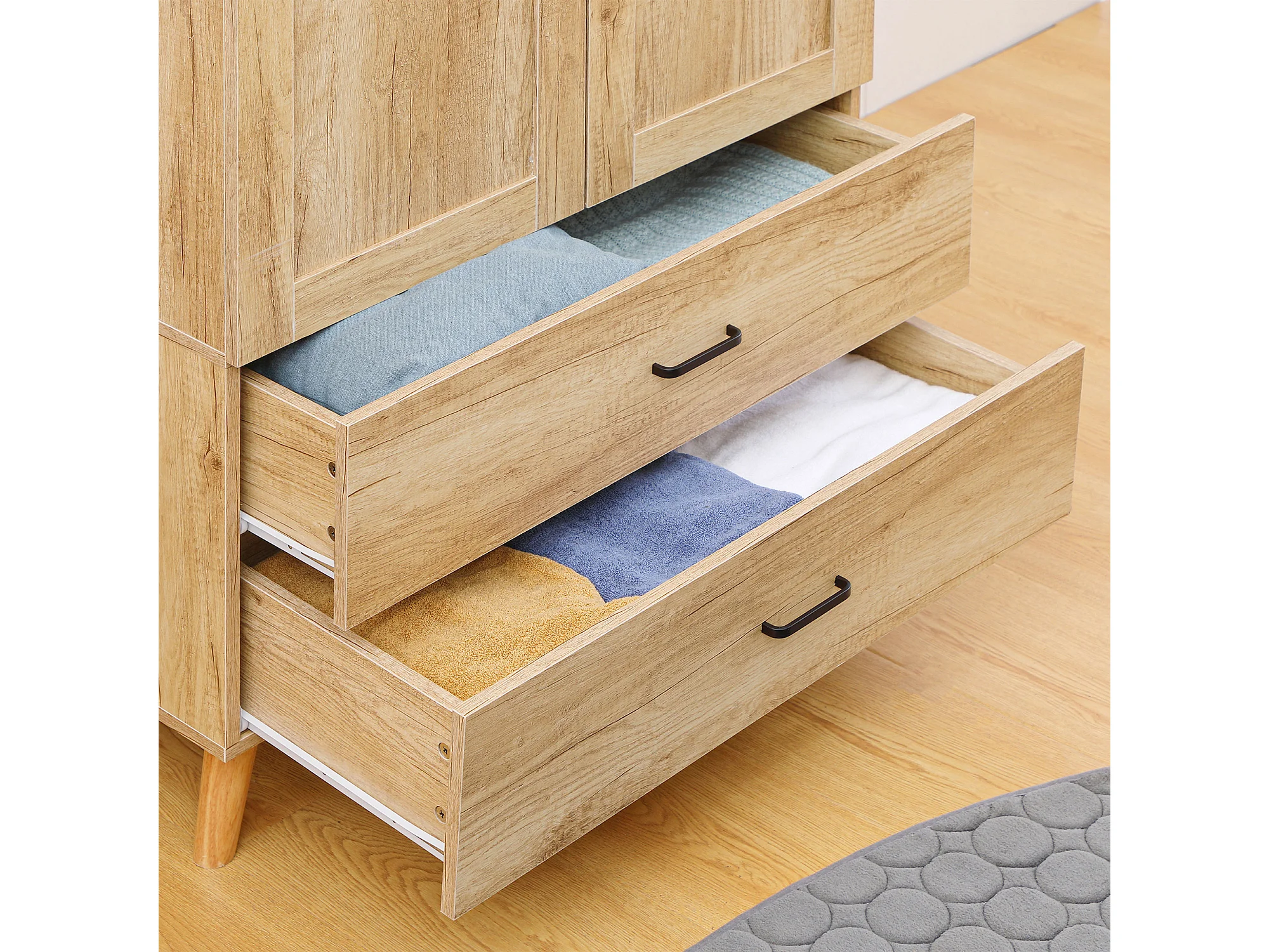 Armadio 2 ante con 2 cassetti asta appendiabiti in legno