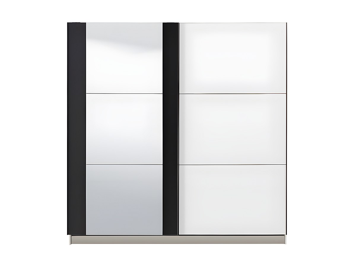 Armadio 2 ante scorrevoli con specchio L.217 cm Bianco e Nero - SUTERA