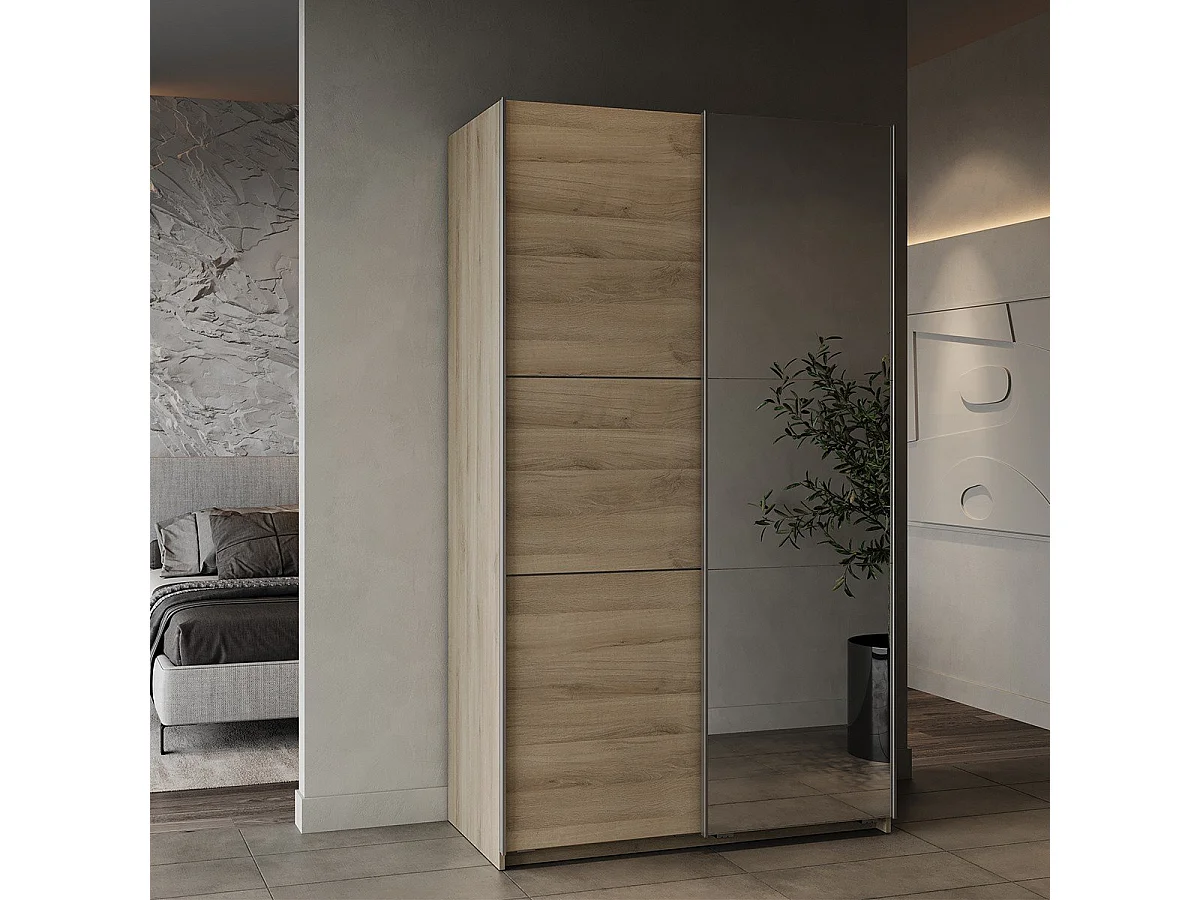 Armadio 2 ante scorrevoli e specchio Ghost - L116,5 cm
