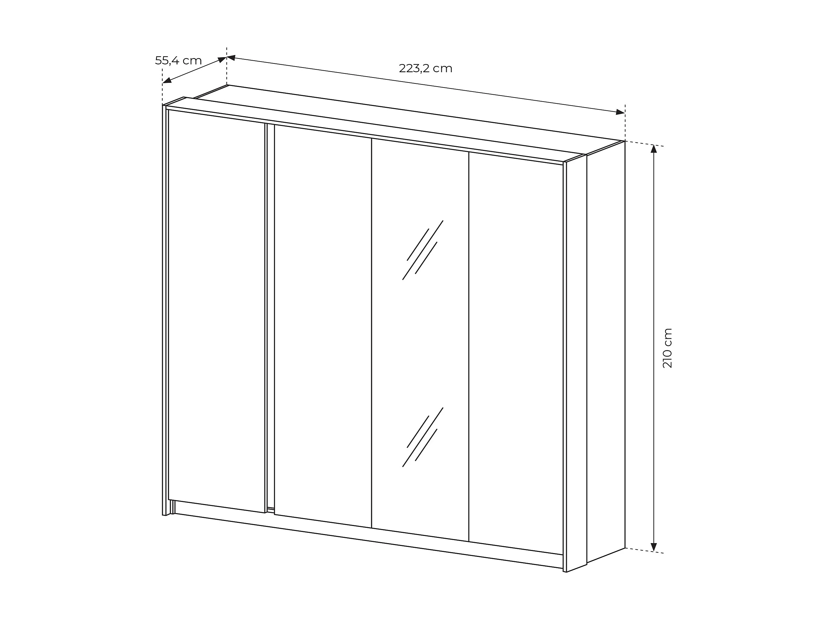 Armadio 223x210cm con 4 ante battenti con specchio moderno beige ALK5