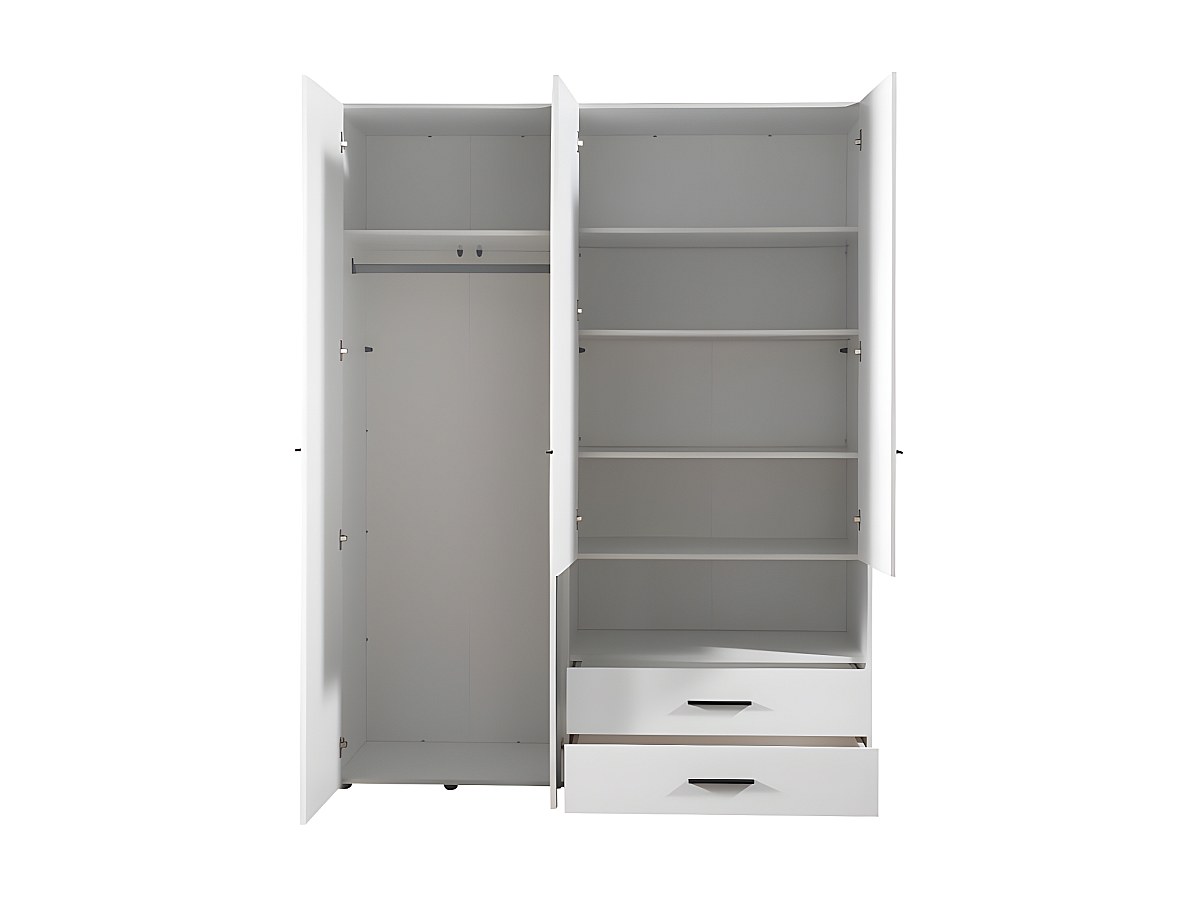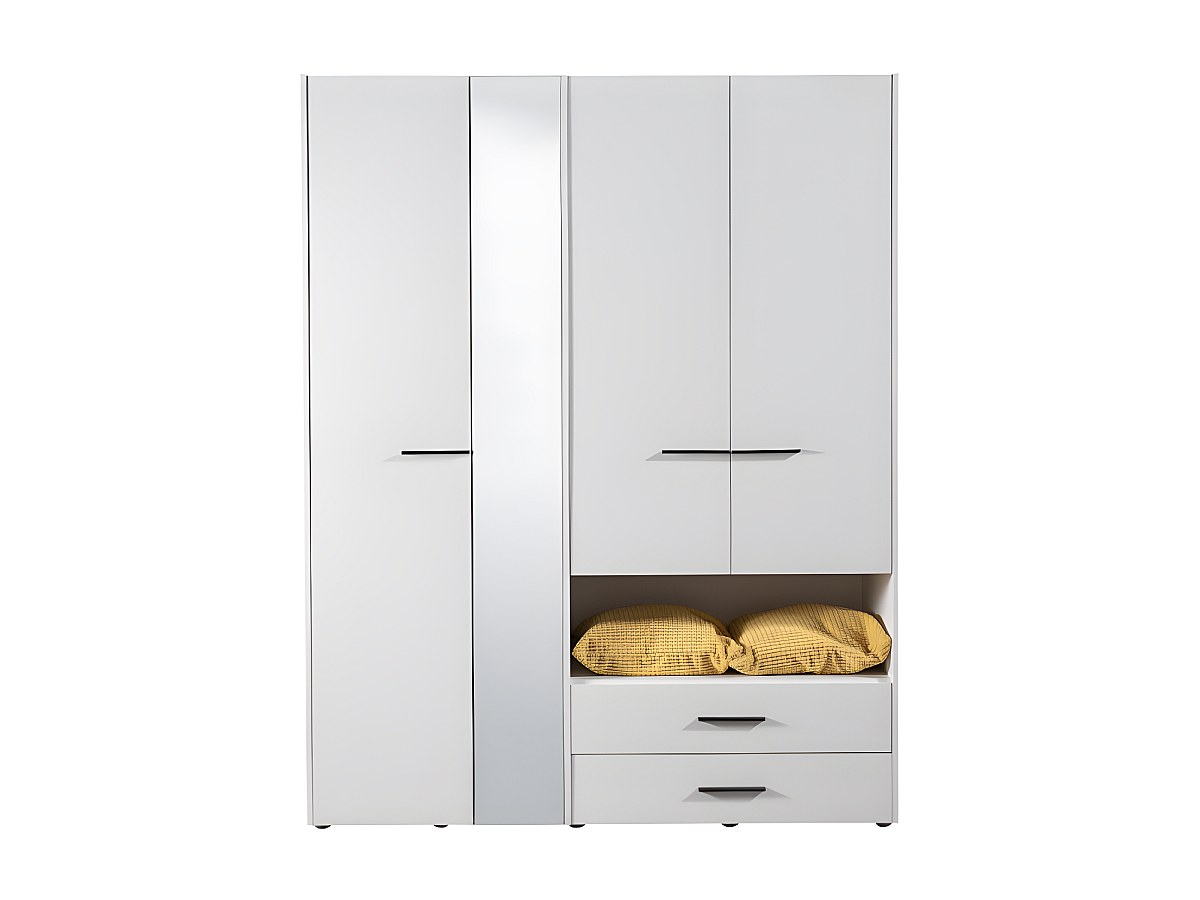 Armadio 3 ante e 2 cassetti con specchio L.161 cm Bianco - THELMA