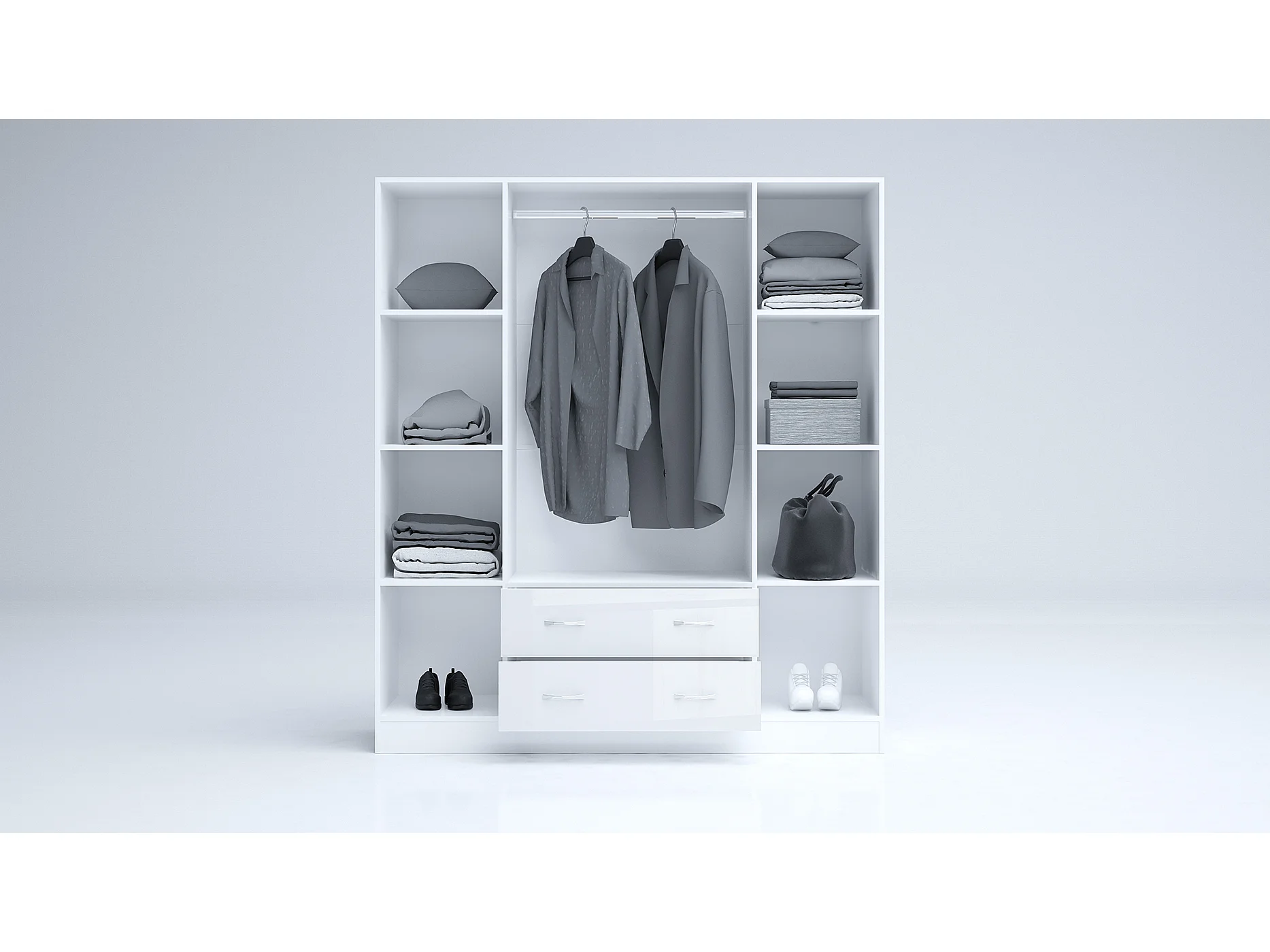 Armadio 4 ante battenti e 2 cassetti 160x181x52 cm bianco lucido AG49