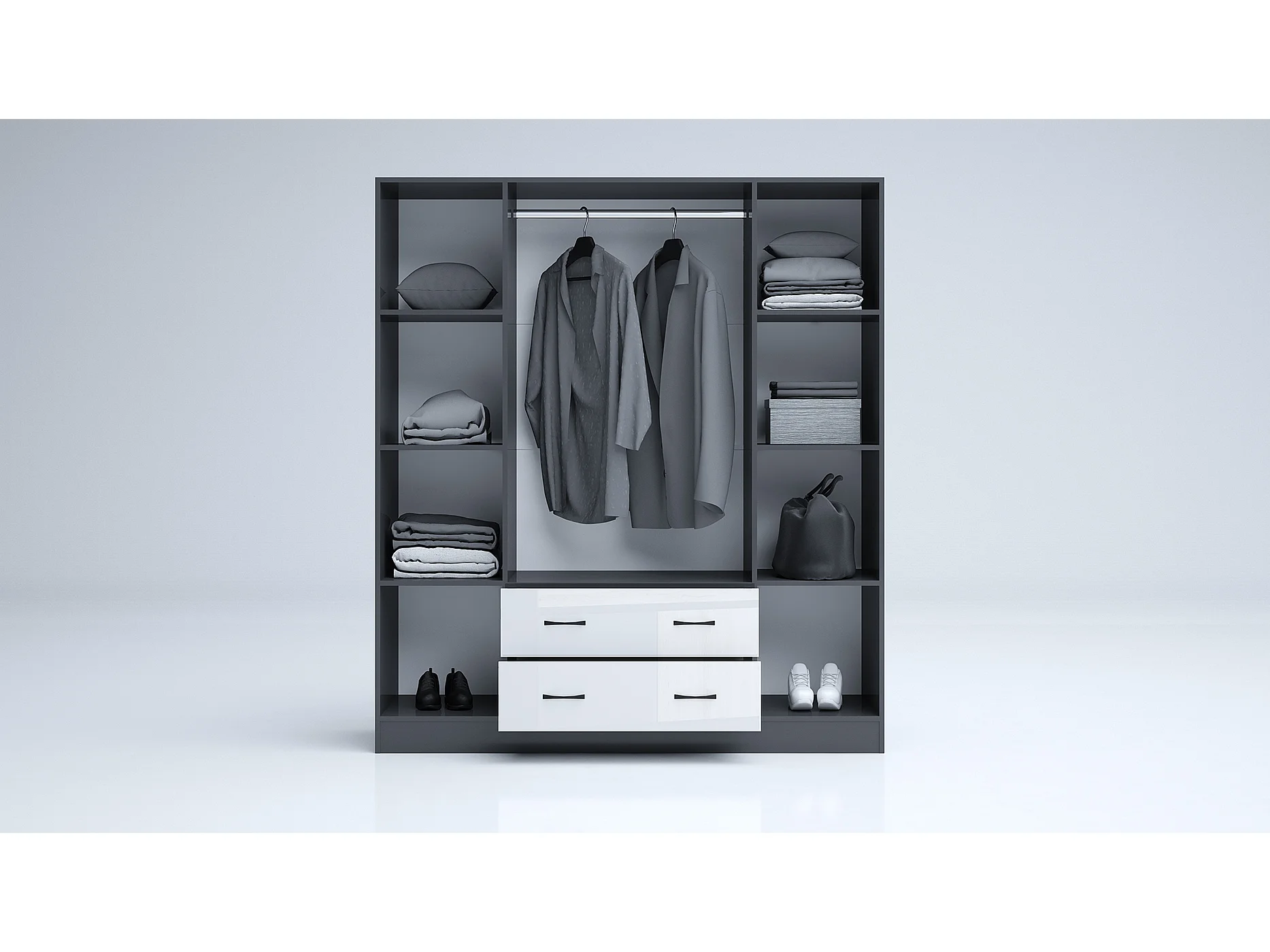 Armadio 4 ante battenti e 2 cassetti 160x181x52 cm bianco lucido/antracite AG49