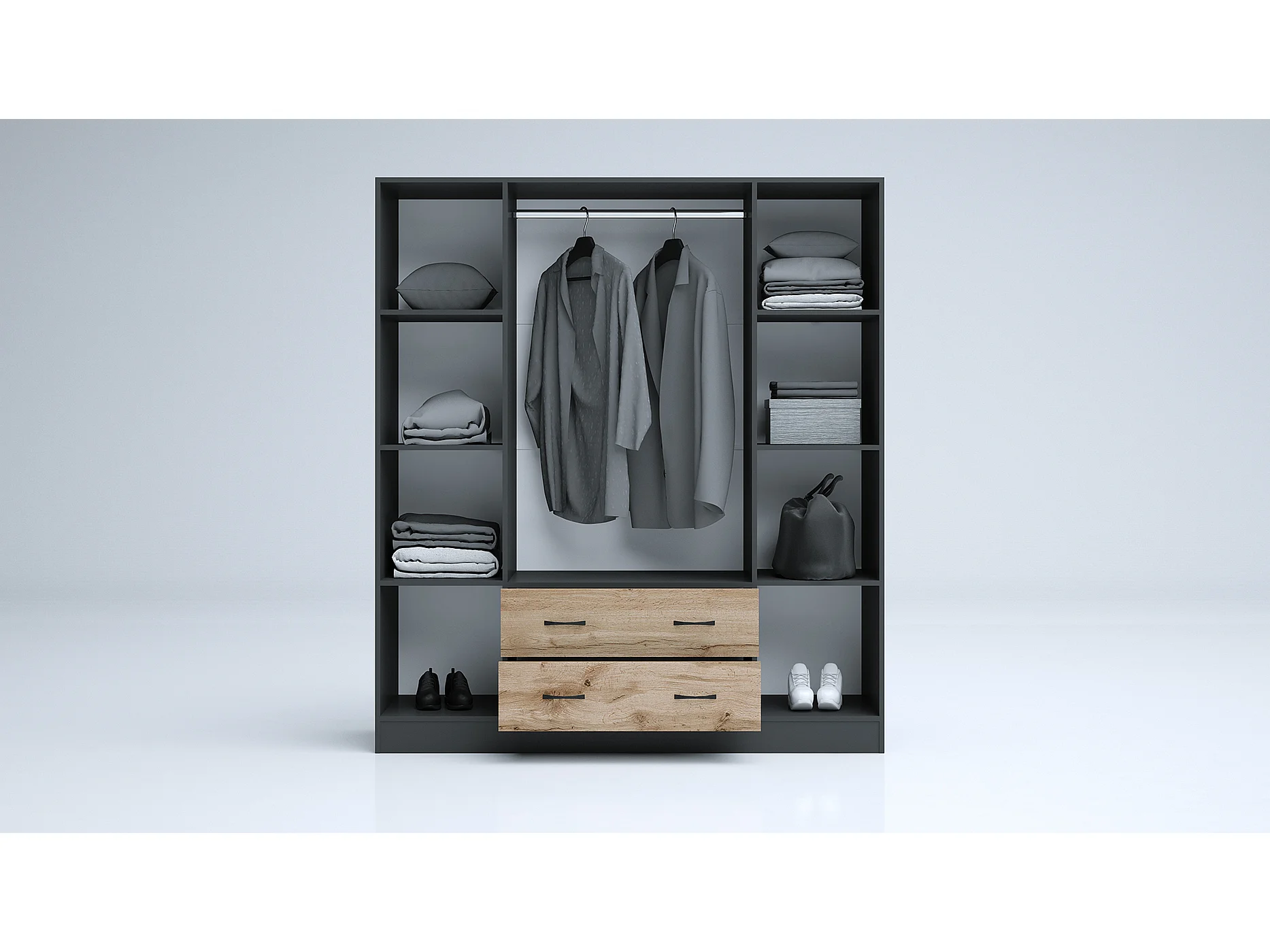 Armadio 4 ante battenti e 2 cassetti 160x181x52 cm bianco lucido/antracite AG49