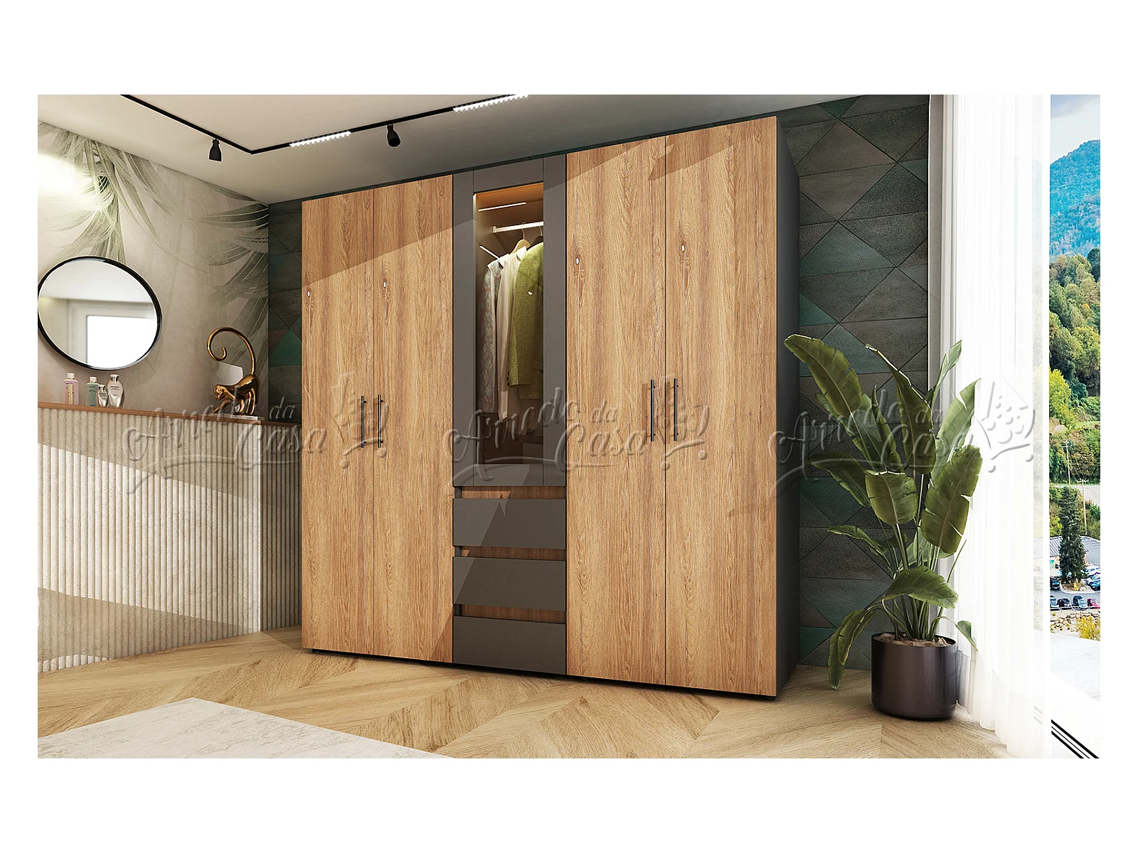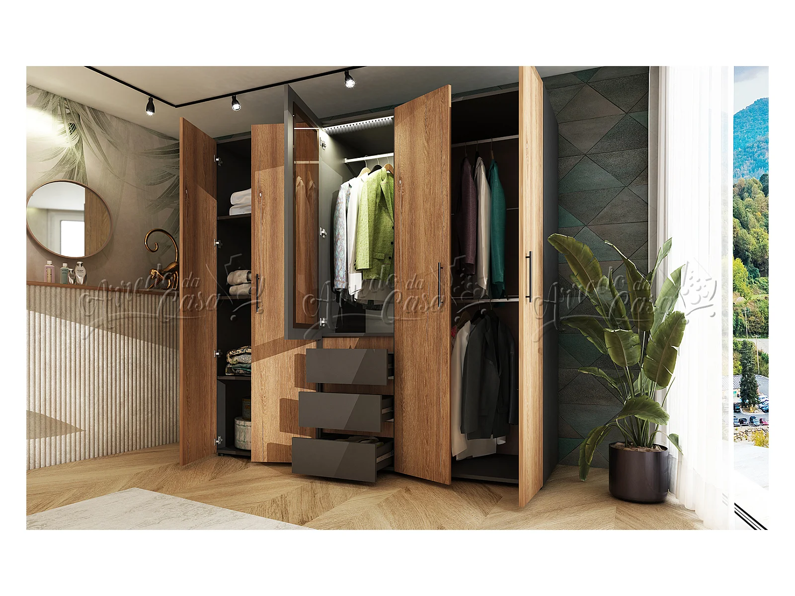 Armadio 5 ante battenti 200x210x52 cm grafite e rovere scuro AU50