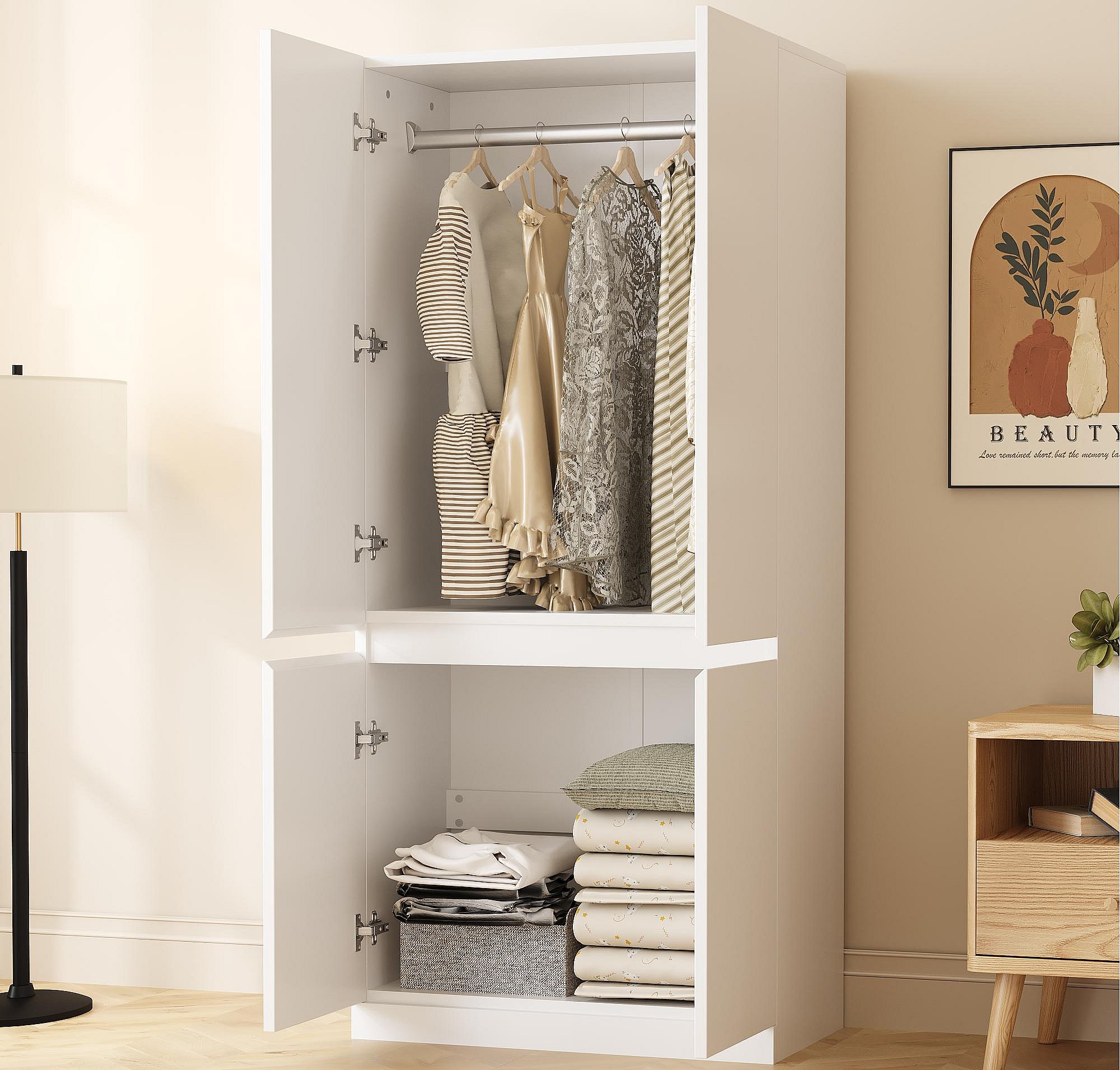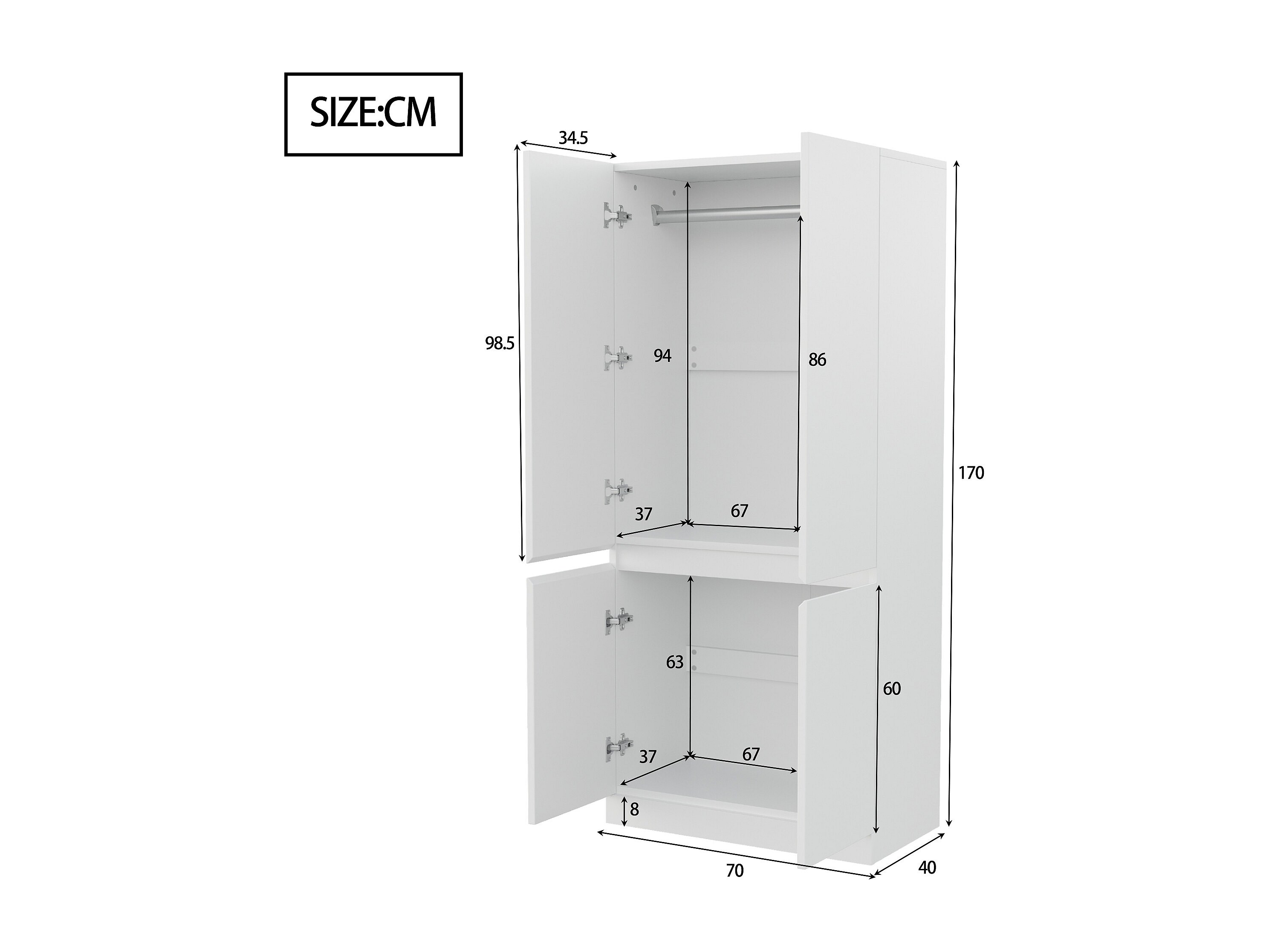 Armadio 70x40x170 cm - 4 ante - con asta per appendere abiti - Bianco