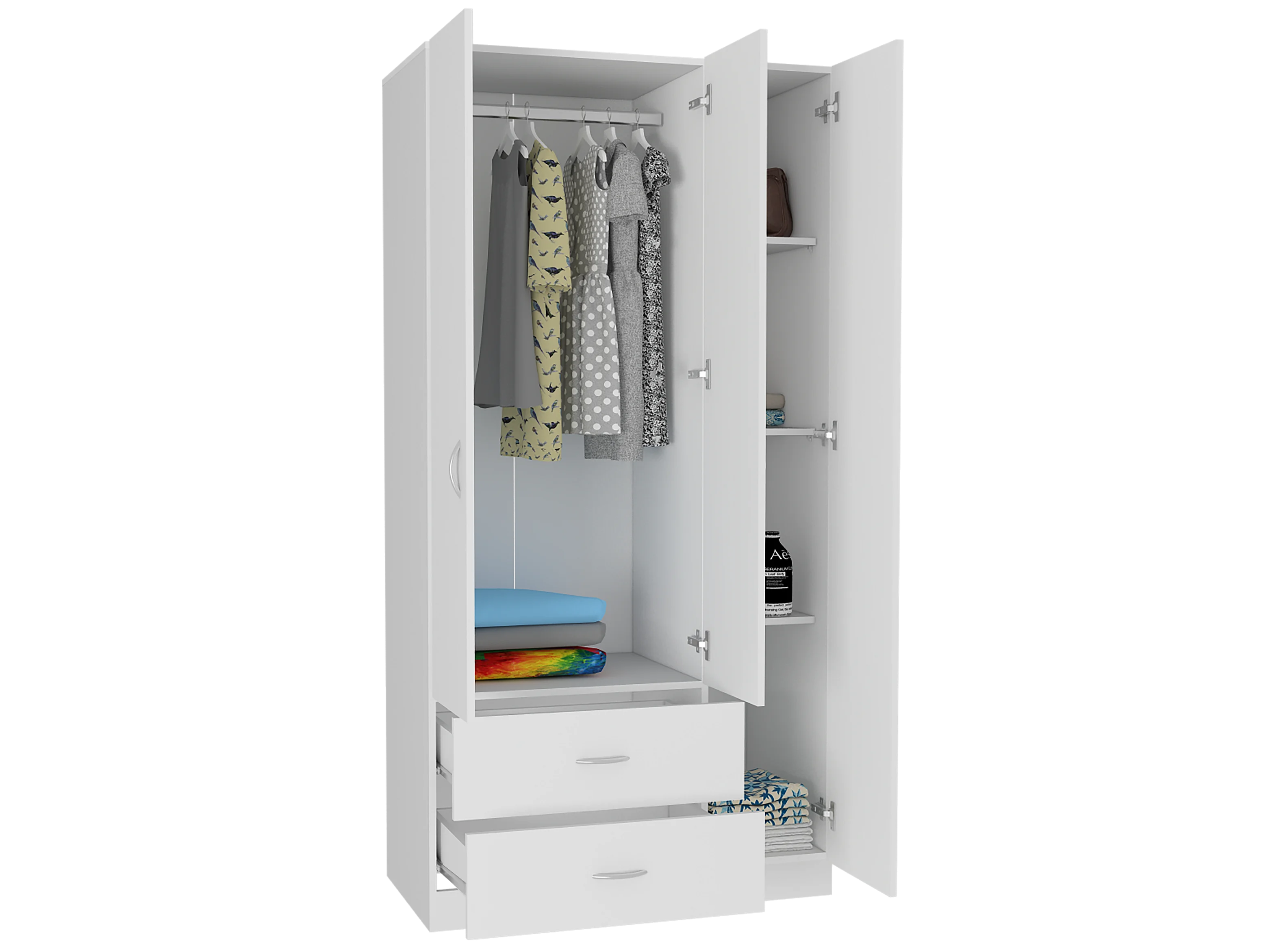 Armadio a 3 ante Austral, con due cassetti 90CM L X 180CM L X 47CM P Bianco
