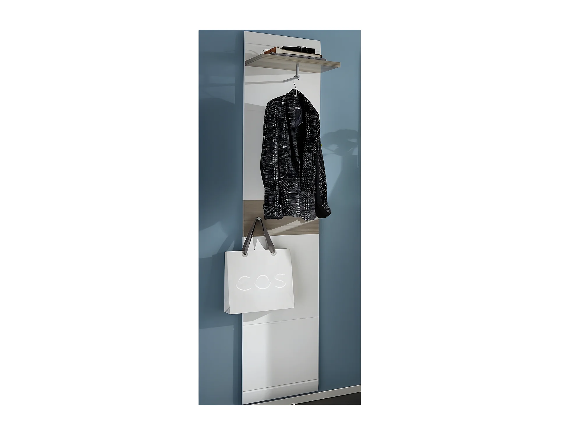 Appendiabiti 1 anta, 1 cassetto e 2 vani a giorno bianco- H195 cm