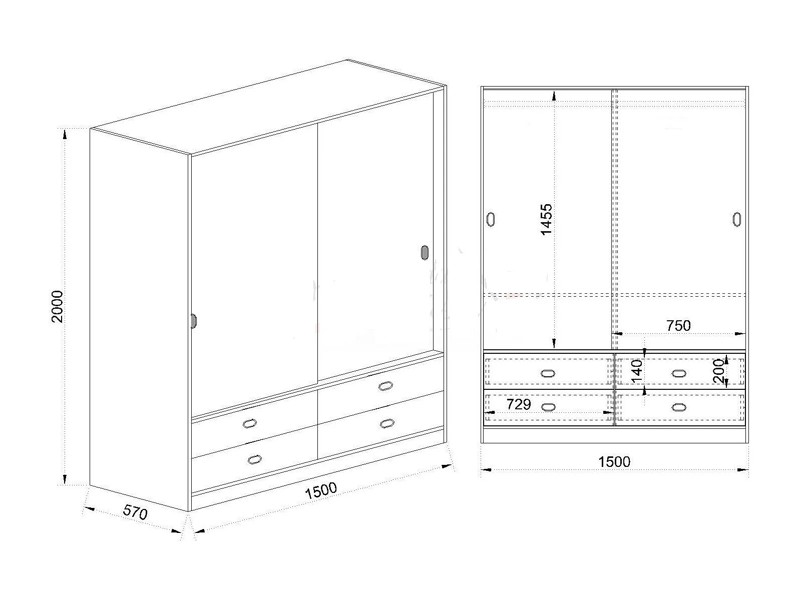 Armadio ad anta scorrevole con quattro cassetti effetto legno 150x200 rovere naturale AI2