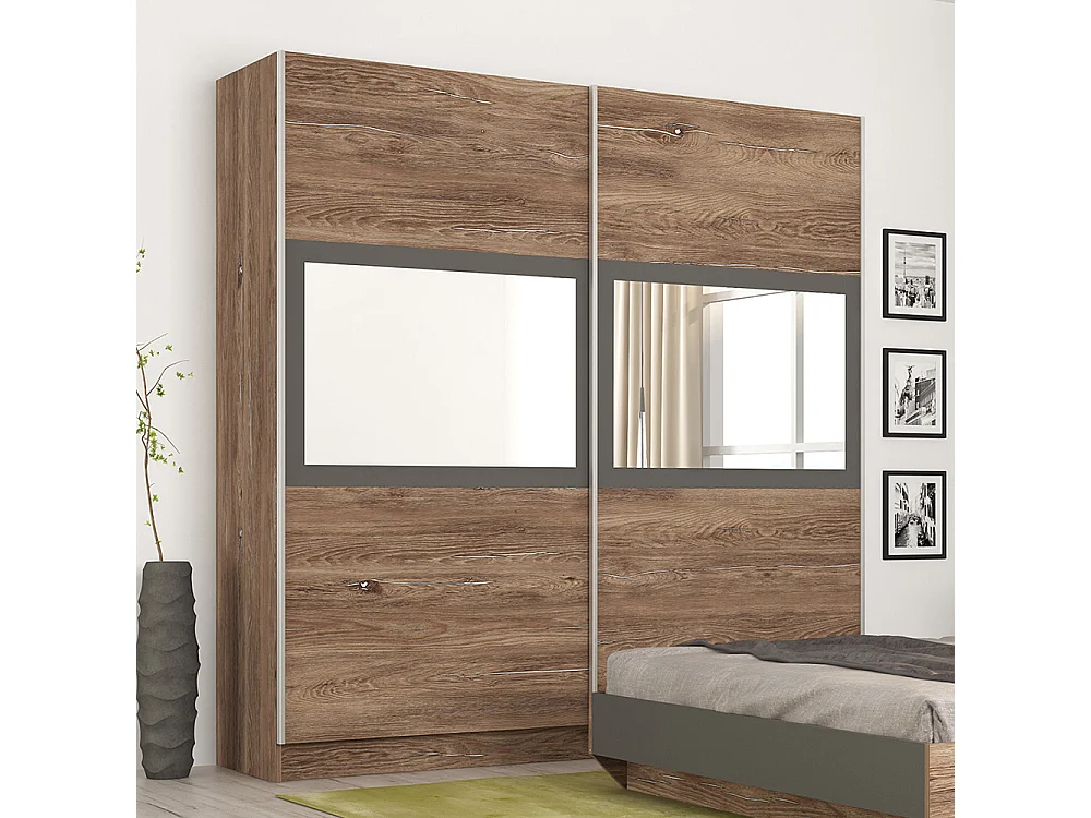 Armadio ad ante scorrevoli con specchio marrone e grigio antracite AG9