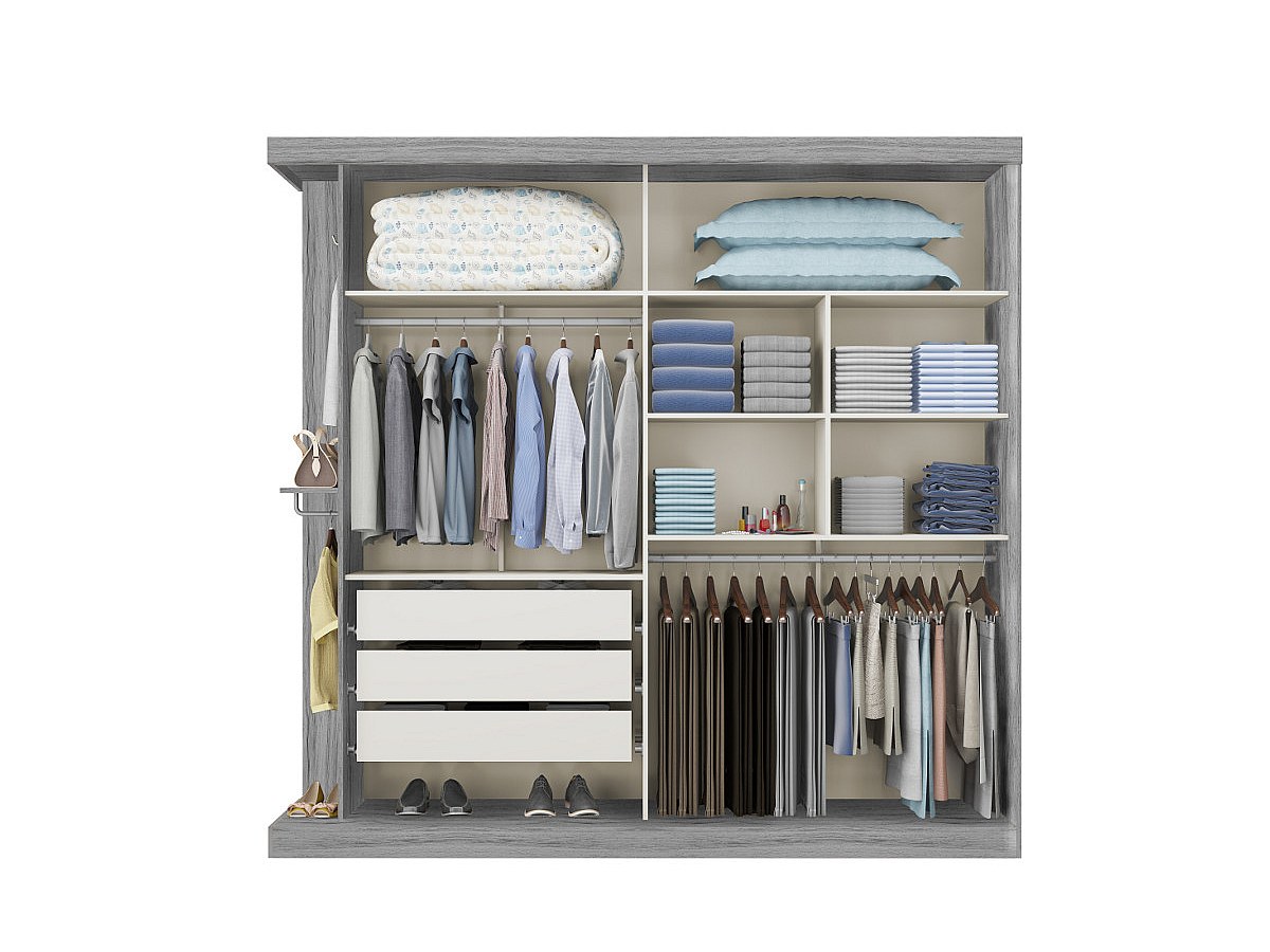- Interno: 2 appendini, 4 mensole piccole, 2 mensole grandi e 3 cassetti