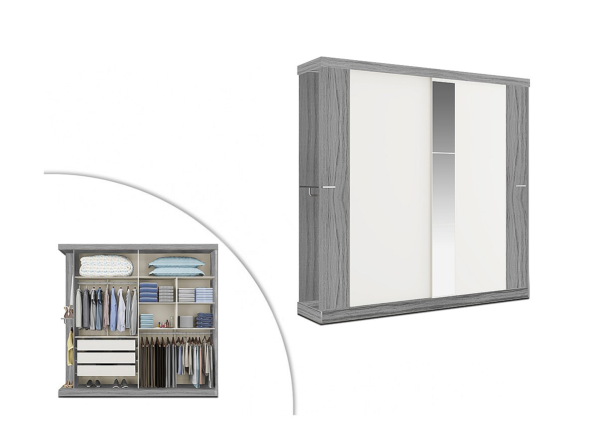 Armadio 2 ante scorrevoli con specchio L.231 cm Grigio e bianco - ADALRIK