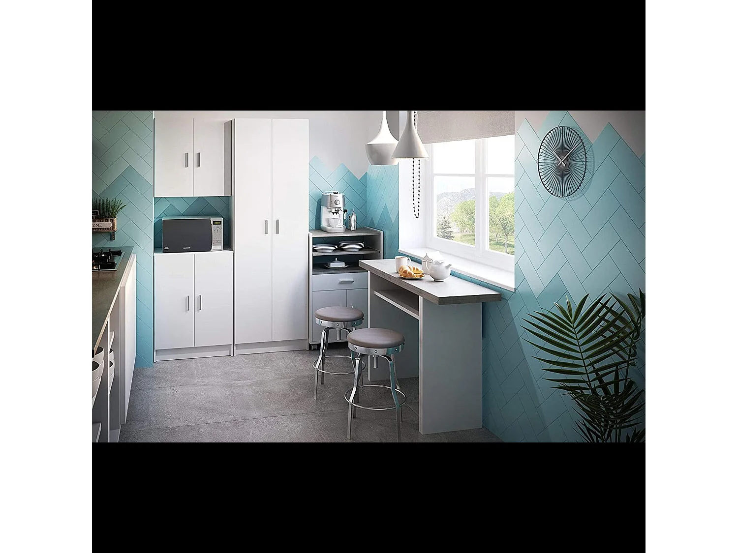 Armadio multiuso 1 anta Treville, Mobile multifunzionale con 4 ripiani interni, Finitura effetto cannettato, 45x56 h199 cm, Bianco