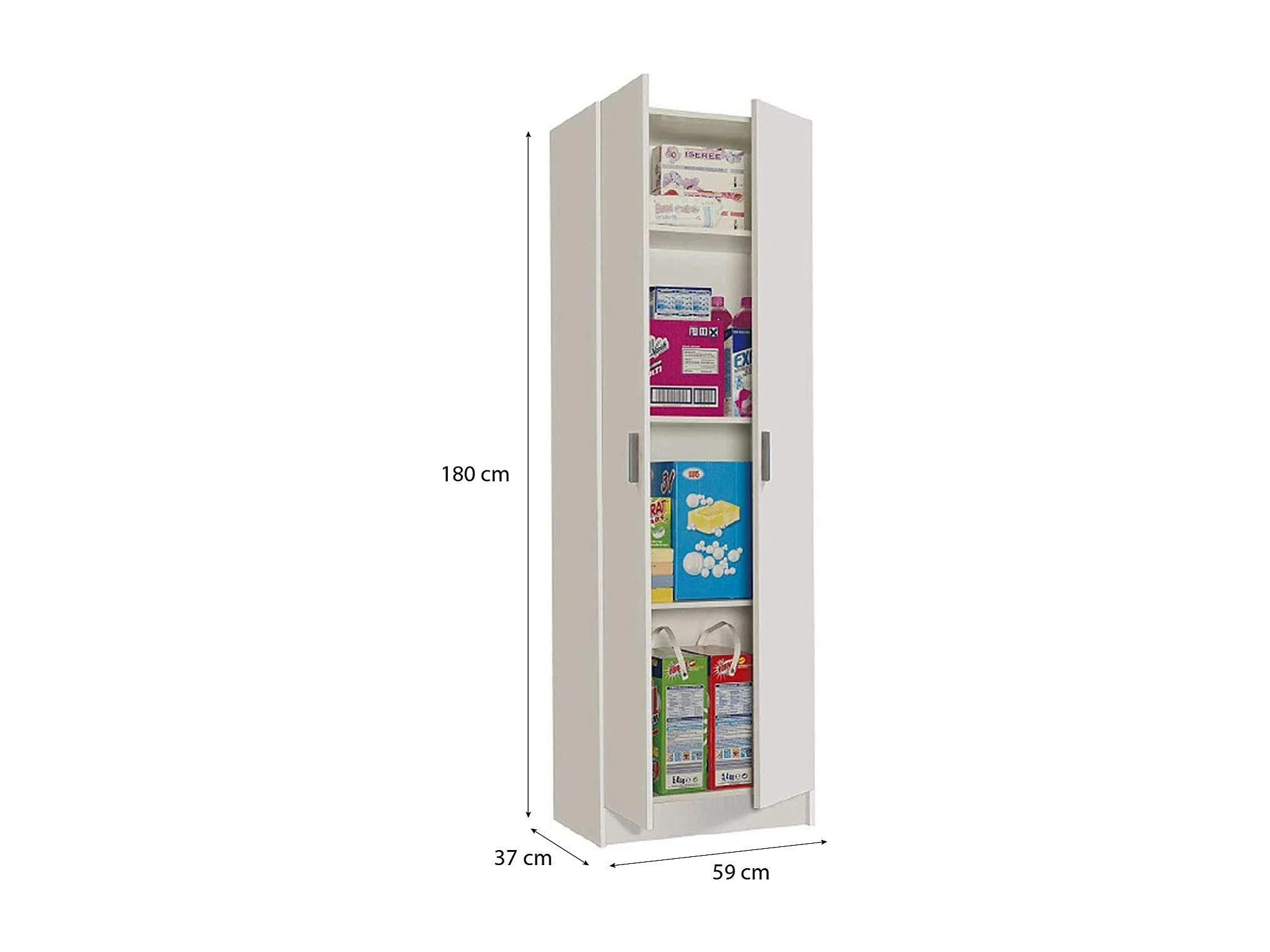 Armadio Armadietto Multiuso A Colonna 2 Ante Battenti E 4 Ripiani Cardinero Salvaspazio Ideale Per Cantina Camera Garage In Legno 58.5 x 180 x 38 Cm Bianco