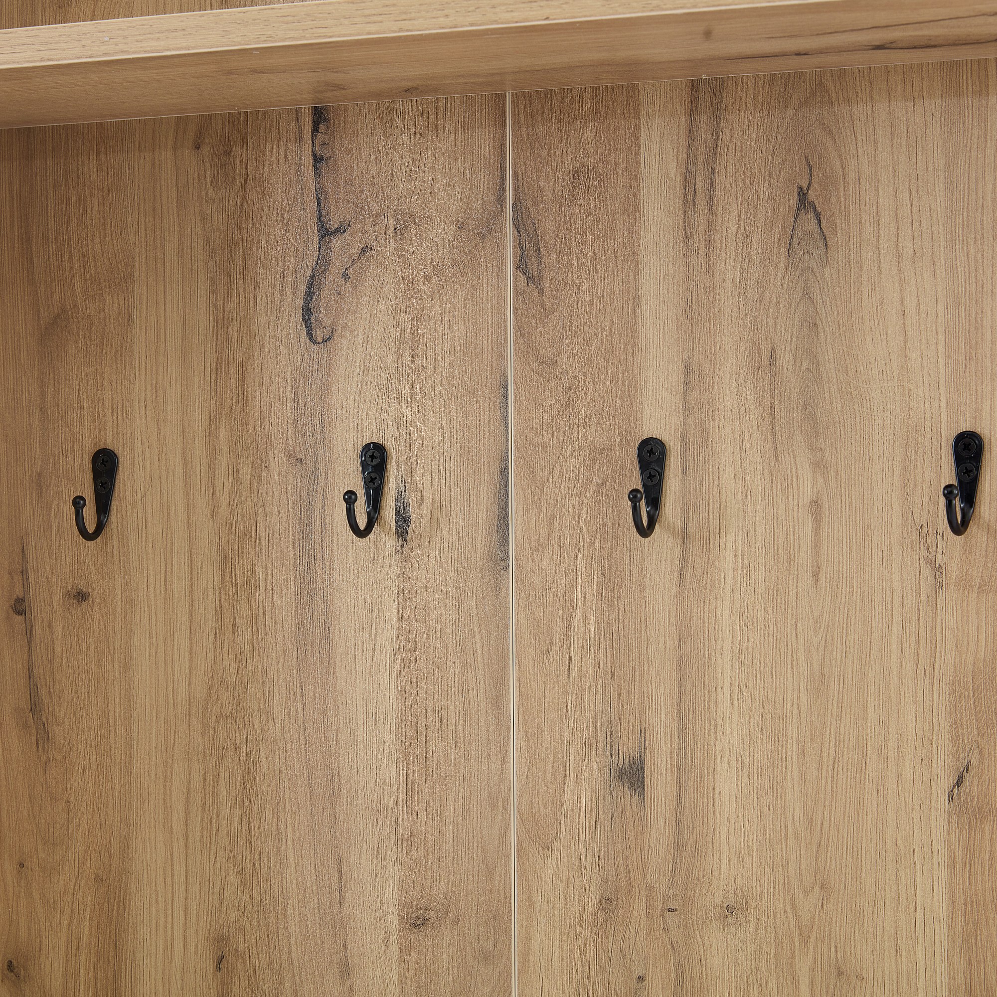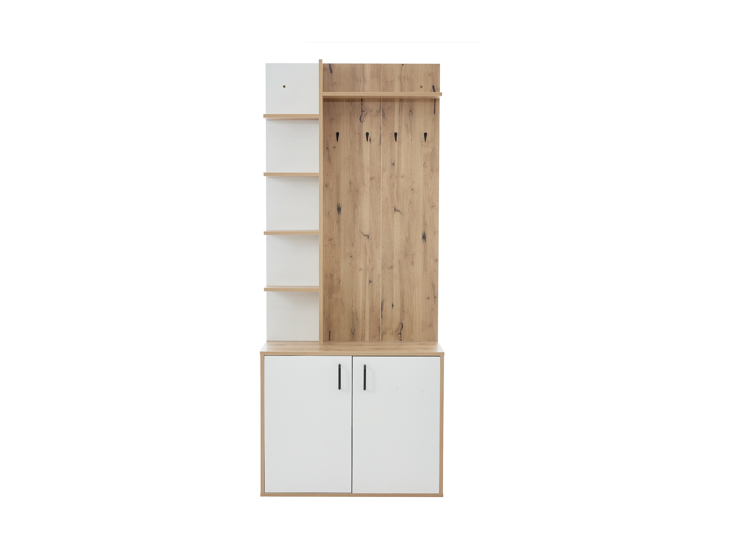 Appendiabiti bianco e naturale con ganci e ripiano portaoggetti, 2 ante – Per ingressi e corridoi