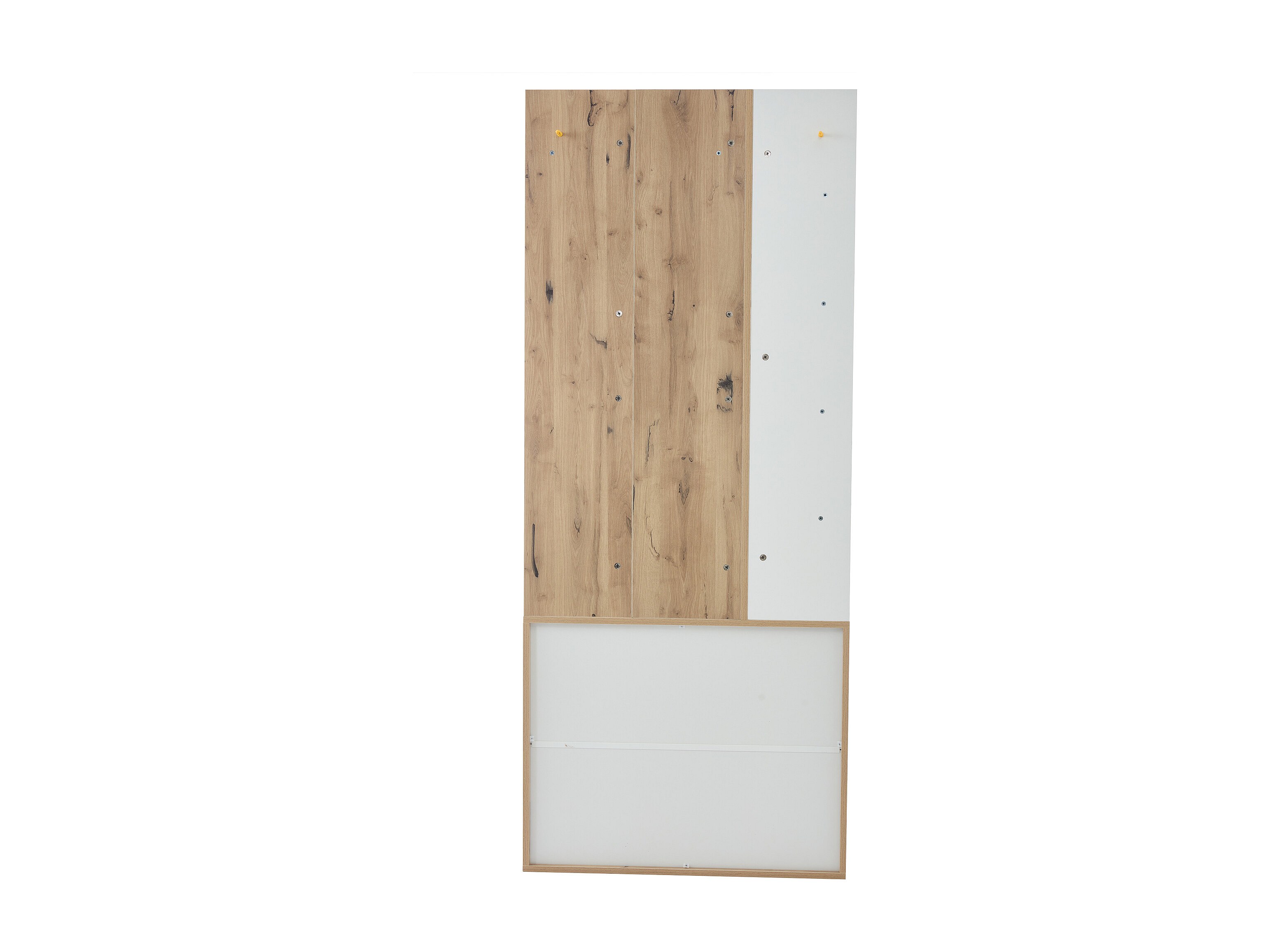 Armadio bianco e naturale con 2 ante, 5 ripiani e ganci, piano in legno venato 75x33x180cm
