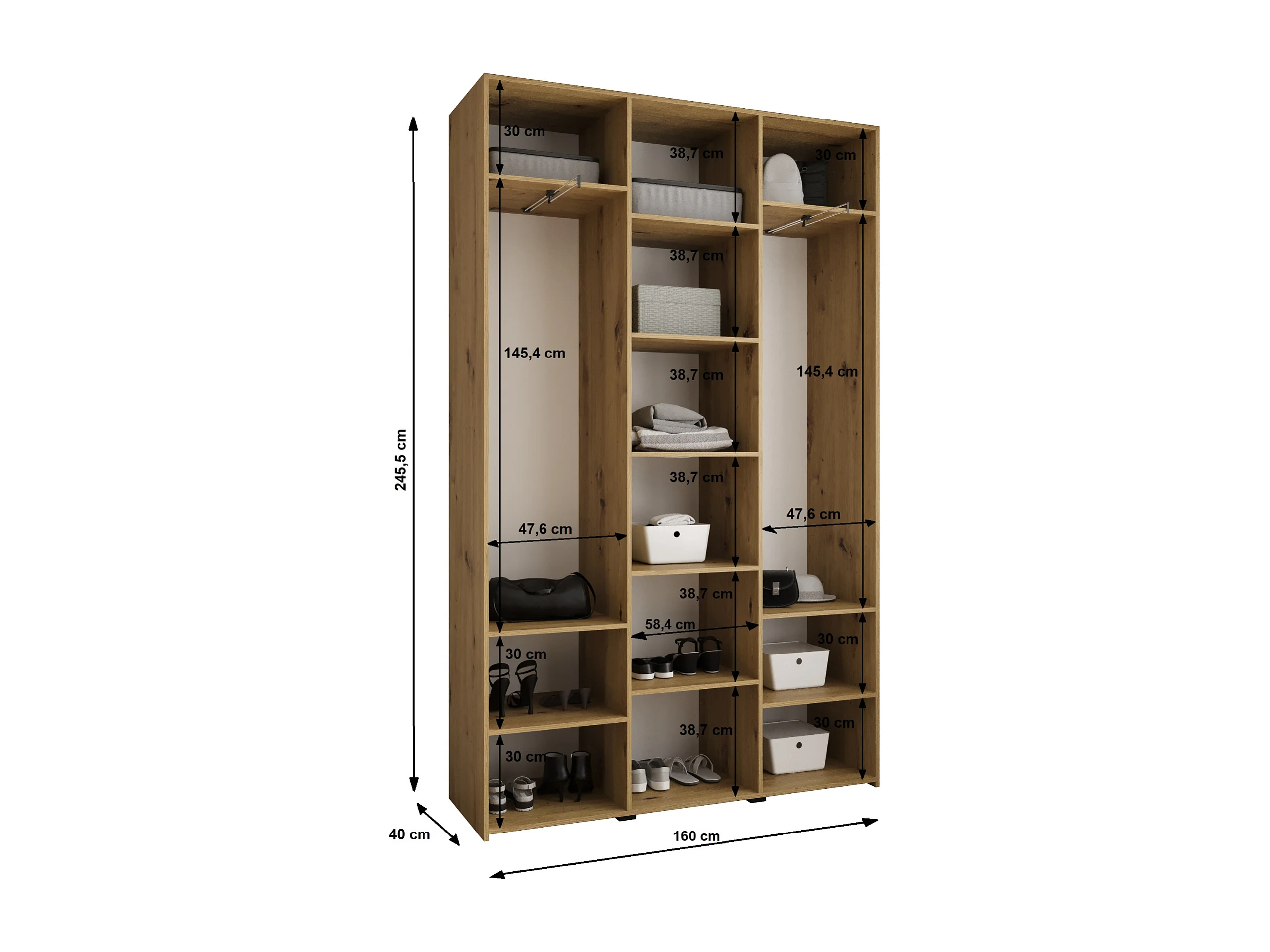 Armadio Como 1 a ante battenti 245,5/160/40 3 porte (bianco/oro)