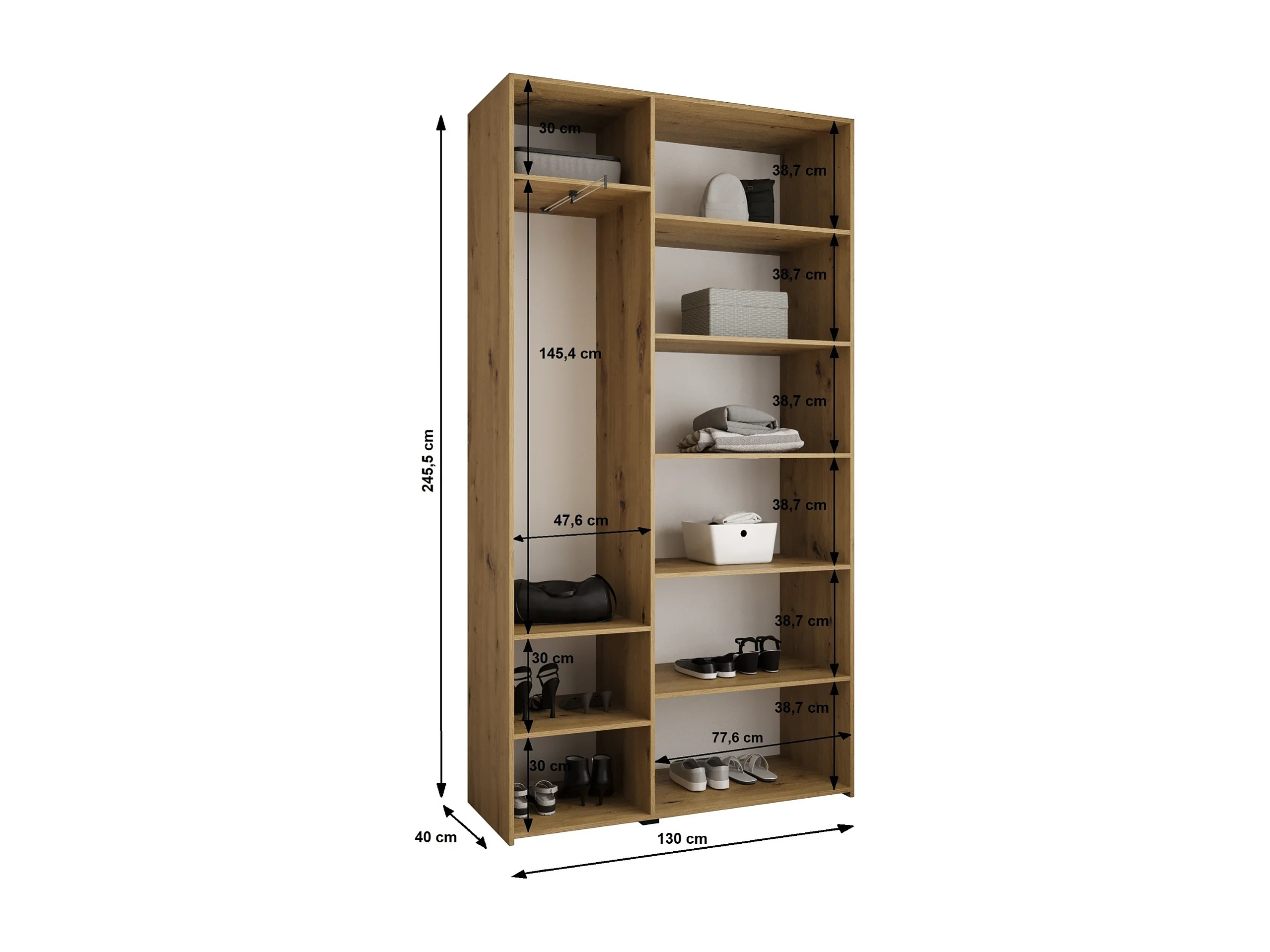 Armadio Como 4 a ante battenti 245,5/130/40 3 porte (cashmere/nero)