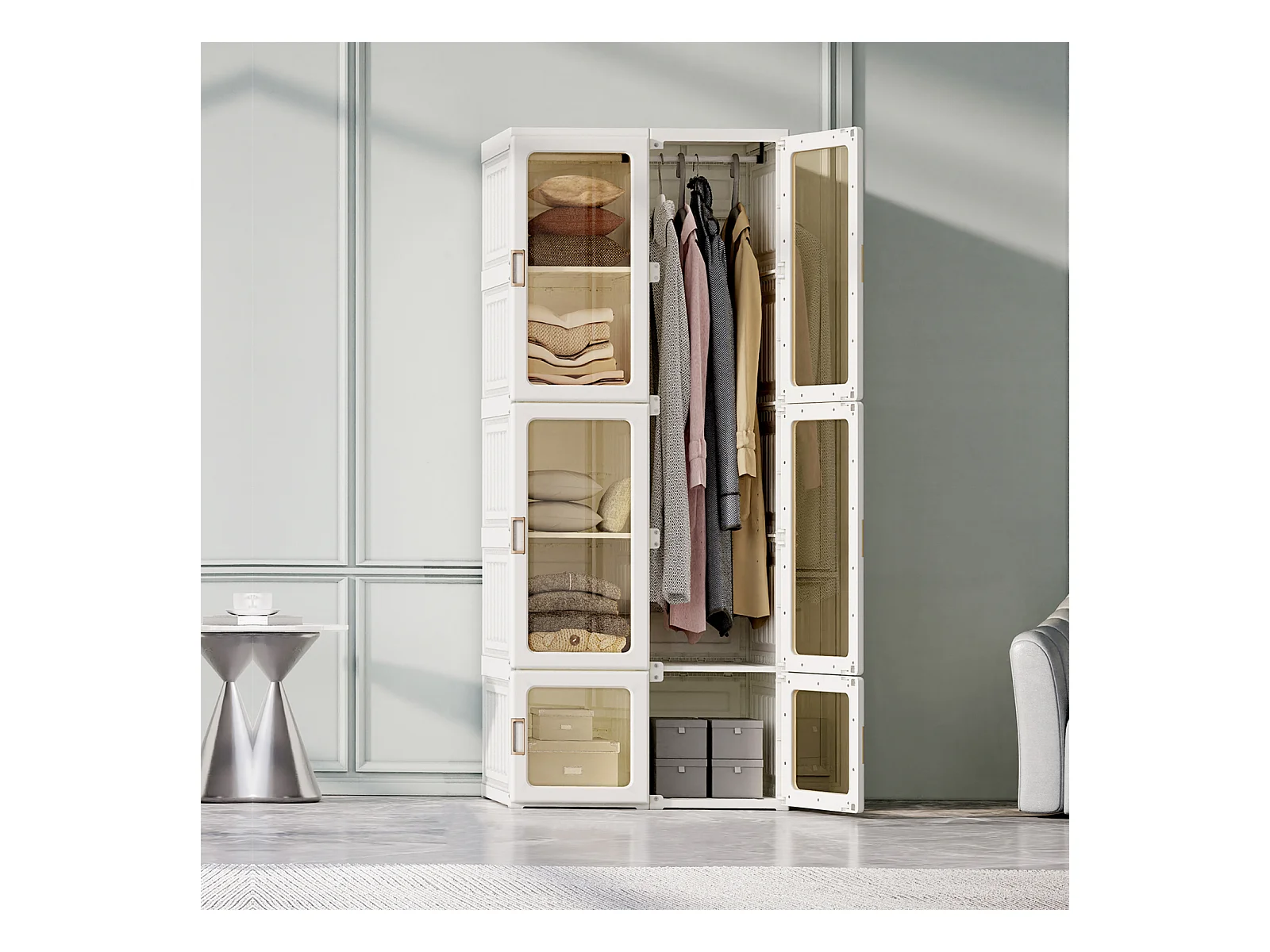 Armadio pieghevole portatile con 8 scomparti e 6 ante trasparenti, struttura in PP, 170x69x50 cm – Grande capacità 590 l