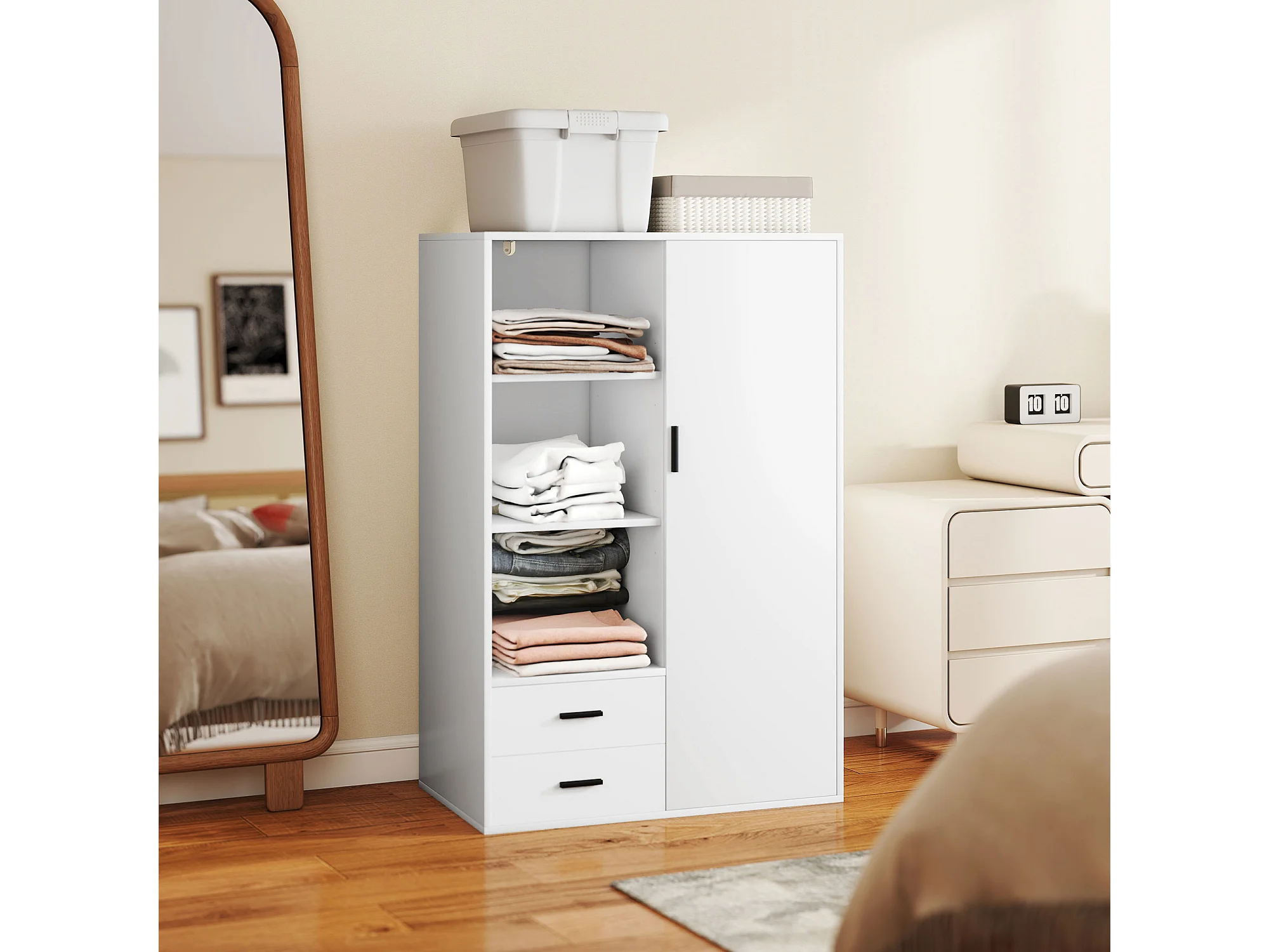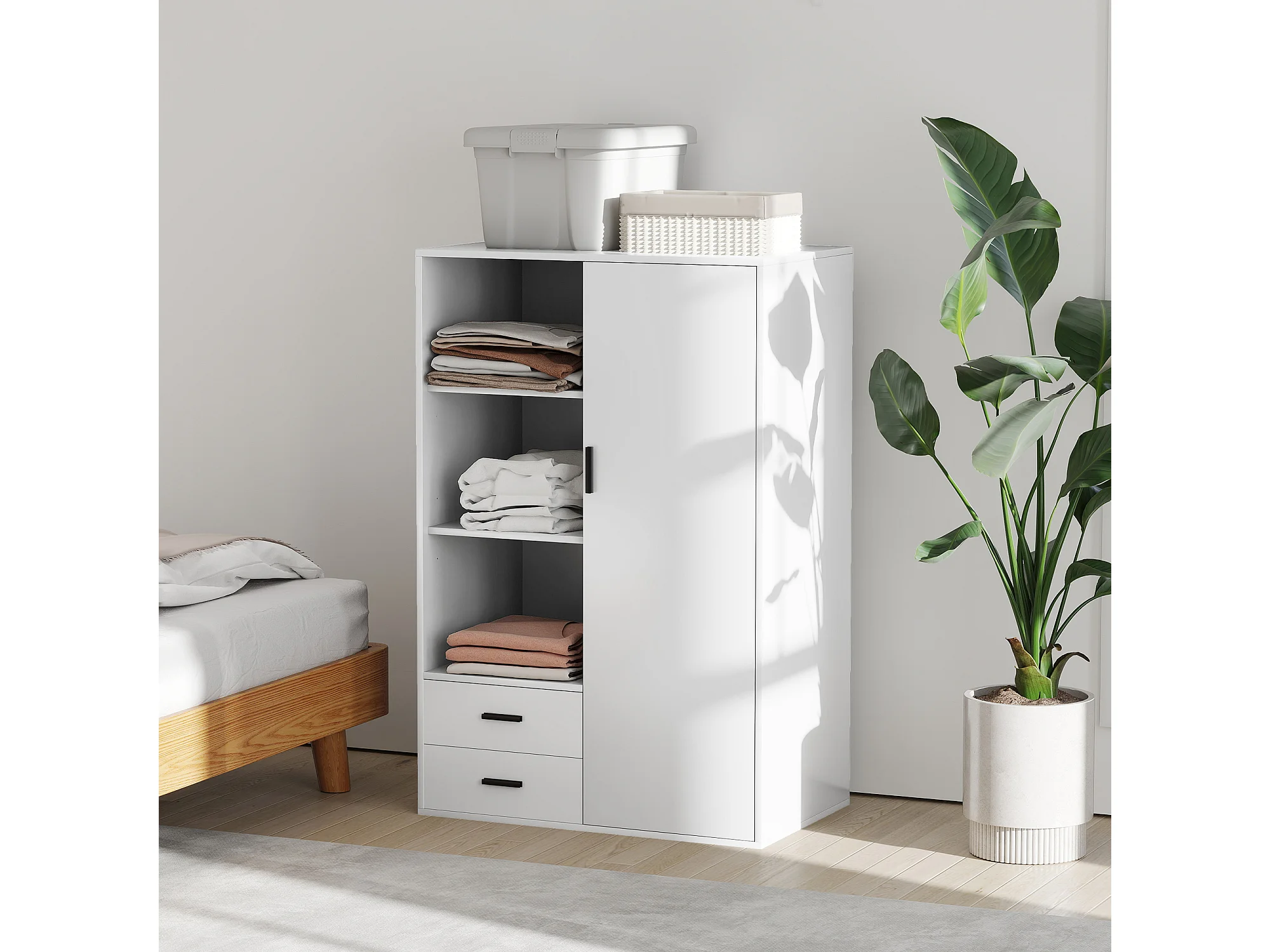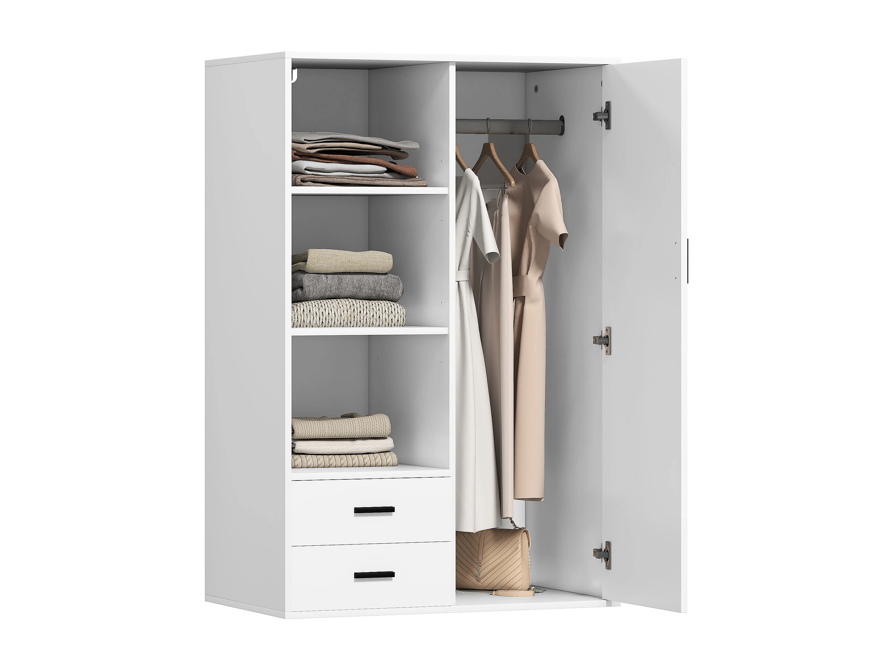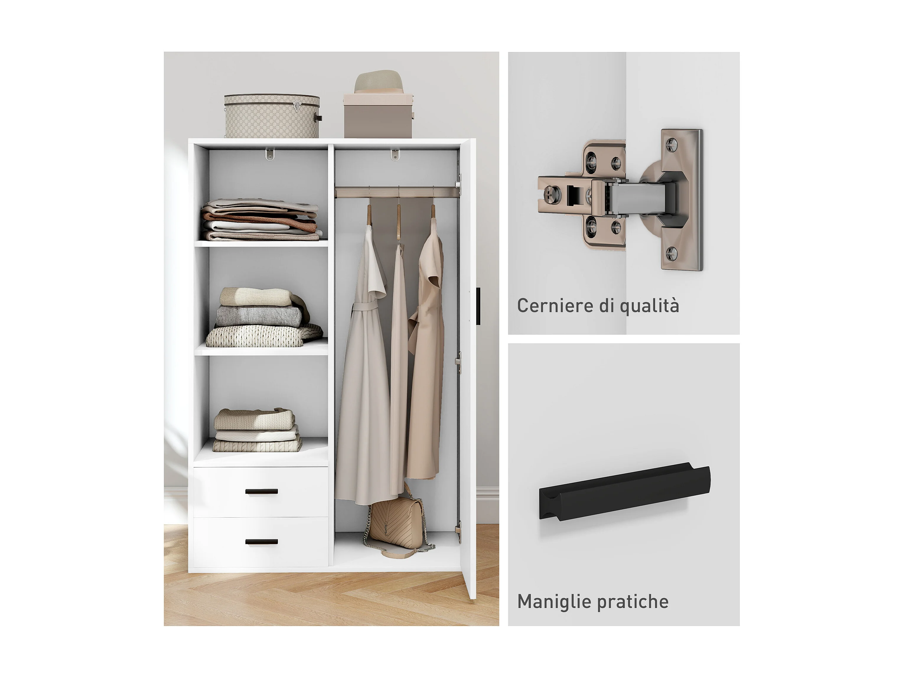 Armadio con 2 cassetti ripiani aperti e appendiabiti bianco