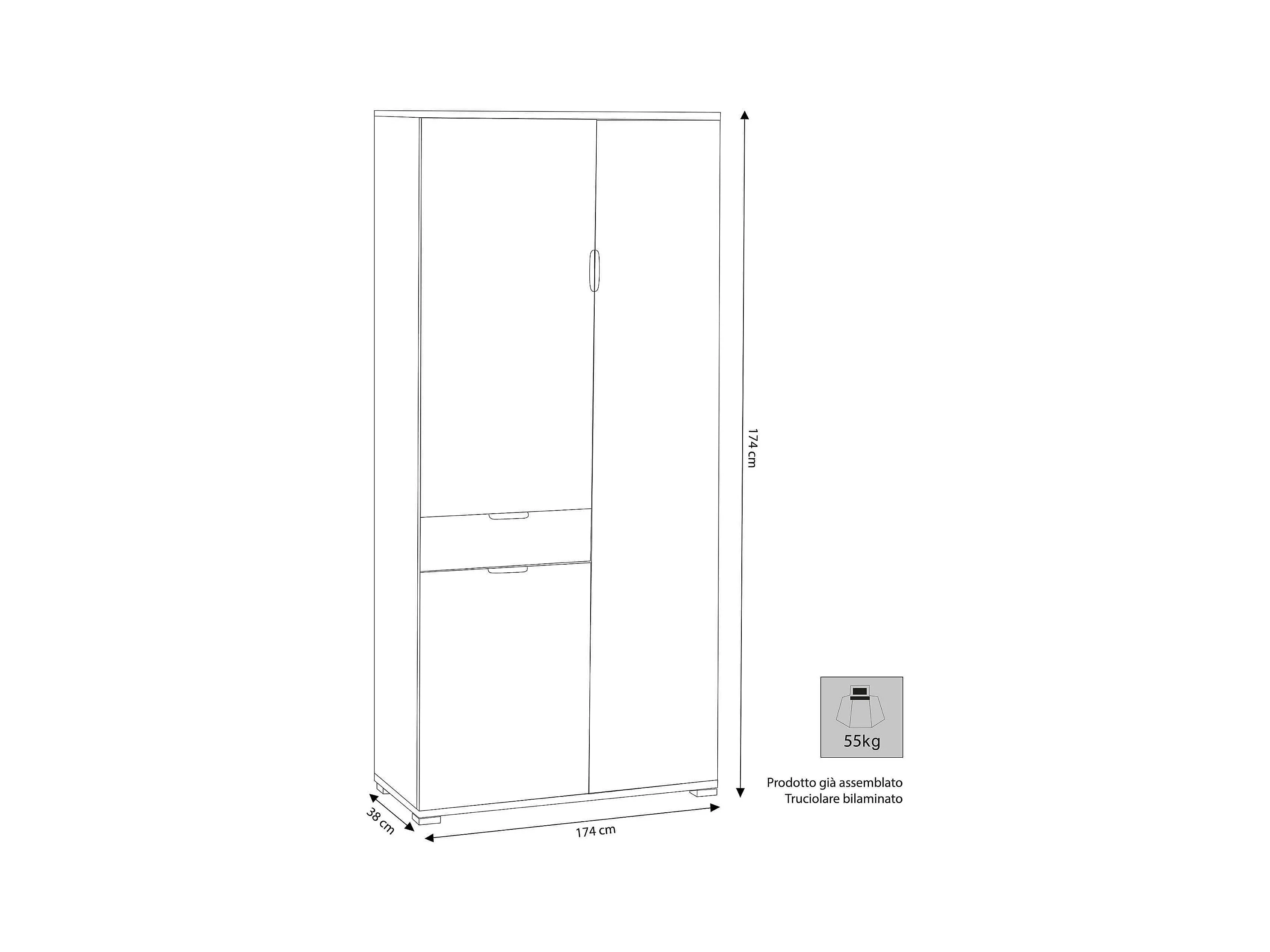 MilaniHome.it - armadio due ante 180 per soggiorno cucina bagno fatto in Italia cm 75x38x174 hdi coloreMarrone chiaro
