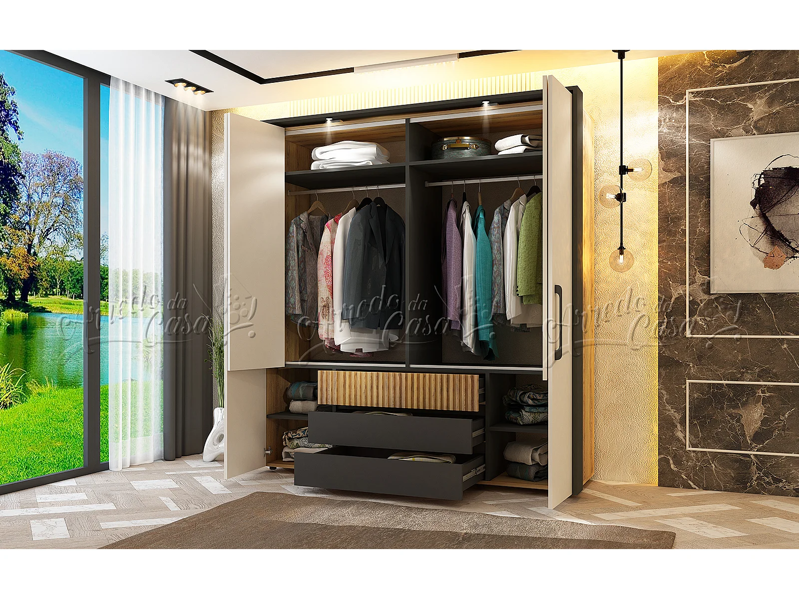 Armadio 5 ante battenti 200x210x52 cm grafite e rovere scuro AU50