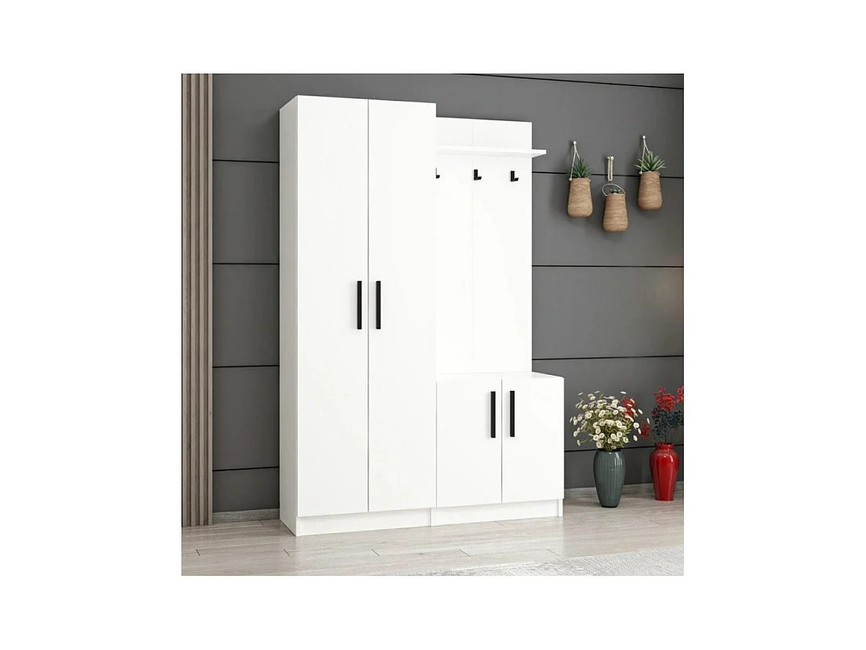Mobile ingresso bianco Archy con appendiabiti e scarpiera 53x31.7x180H – Stile industriale e organizzazione