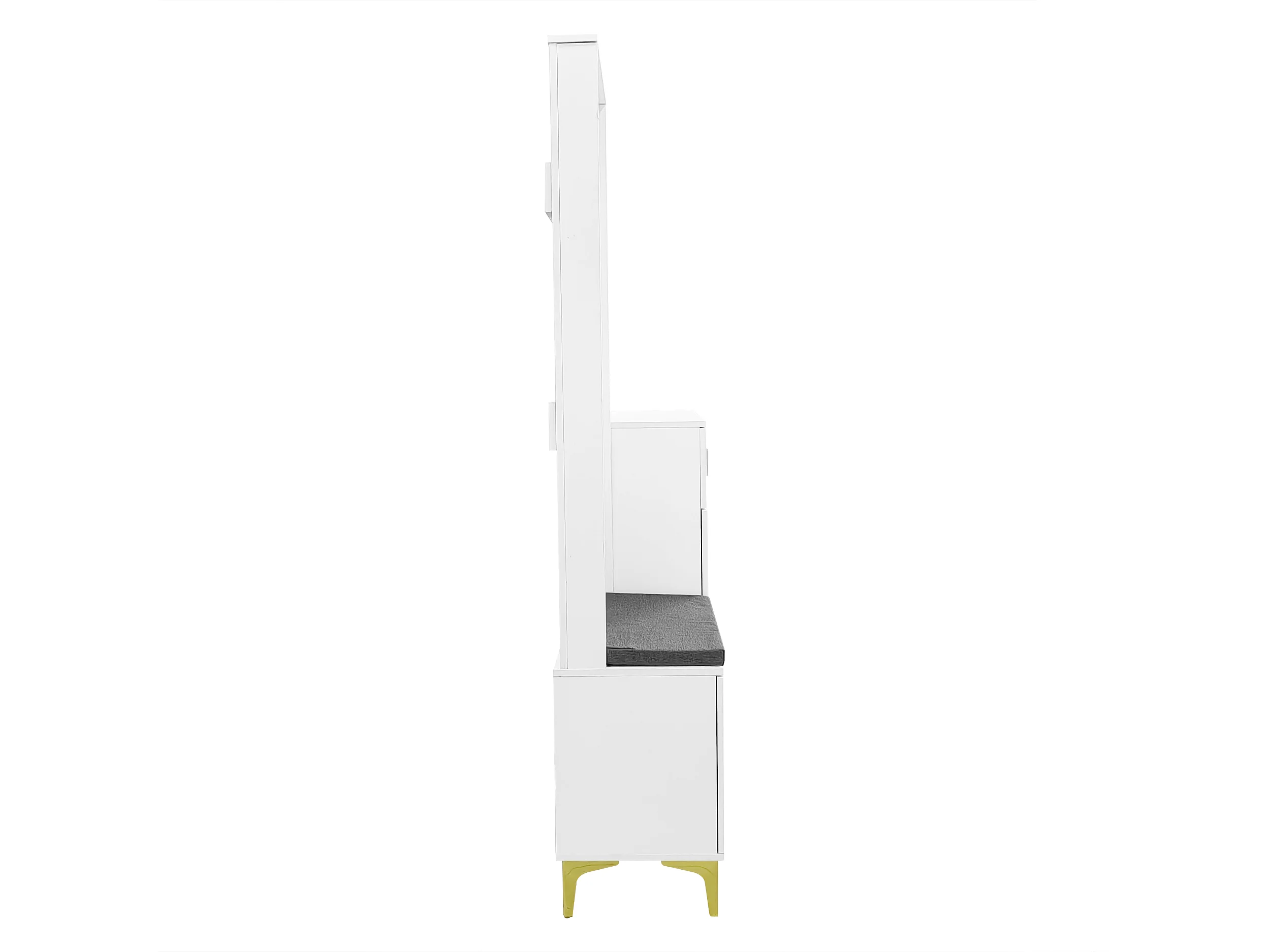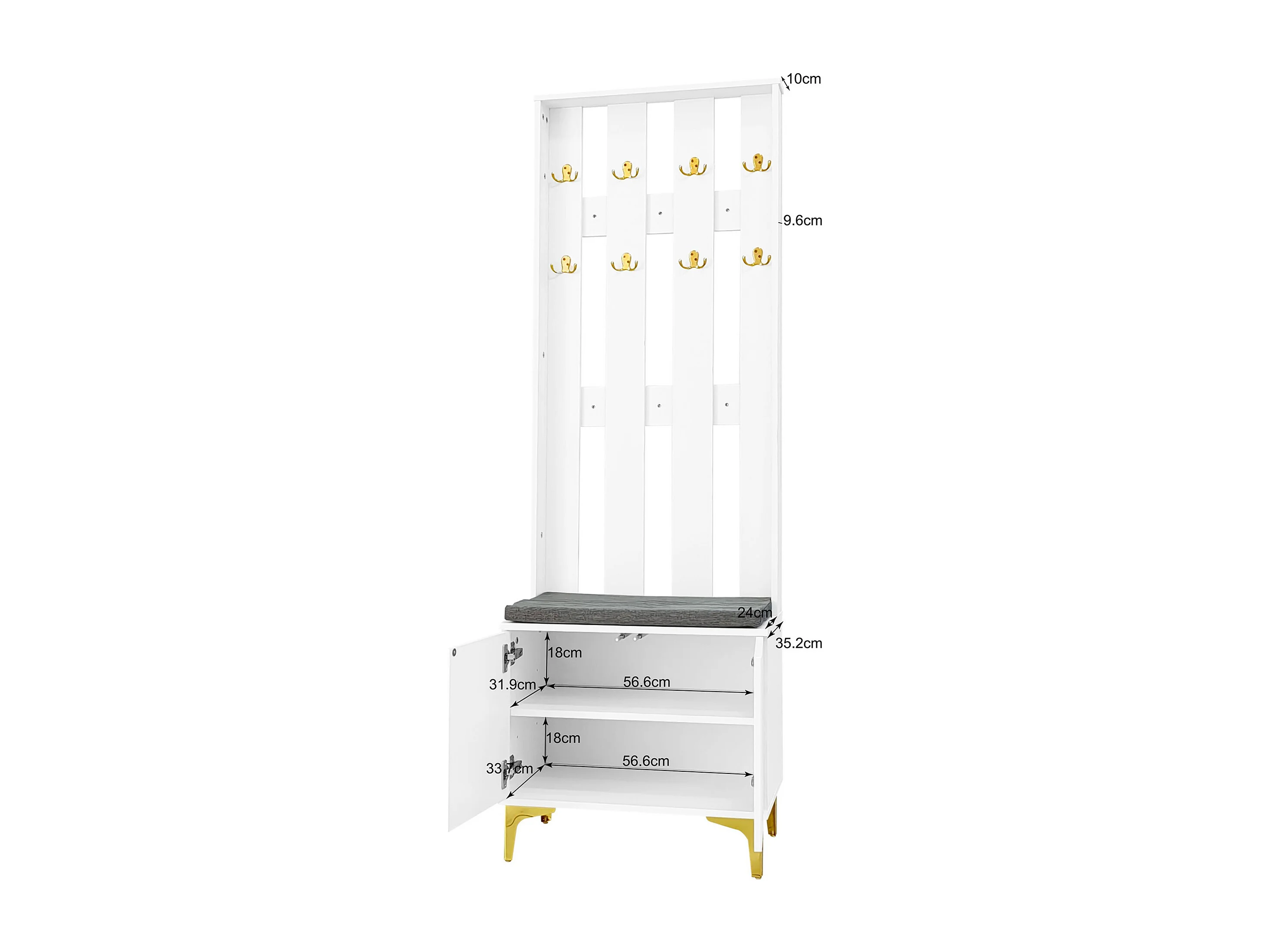 Armadio con panca portascarpe e cuscino, design moderno, truciolato, bianco e oro (60,5x180,5x35,2 cm)