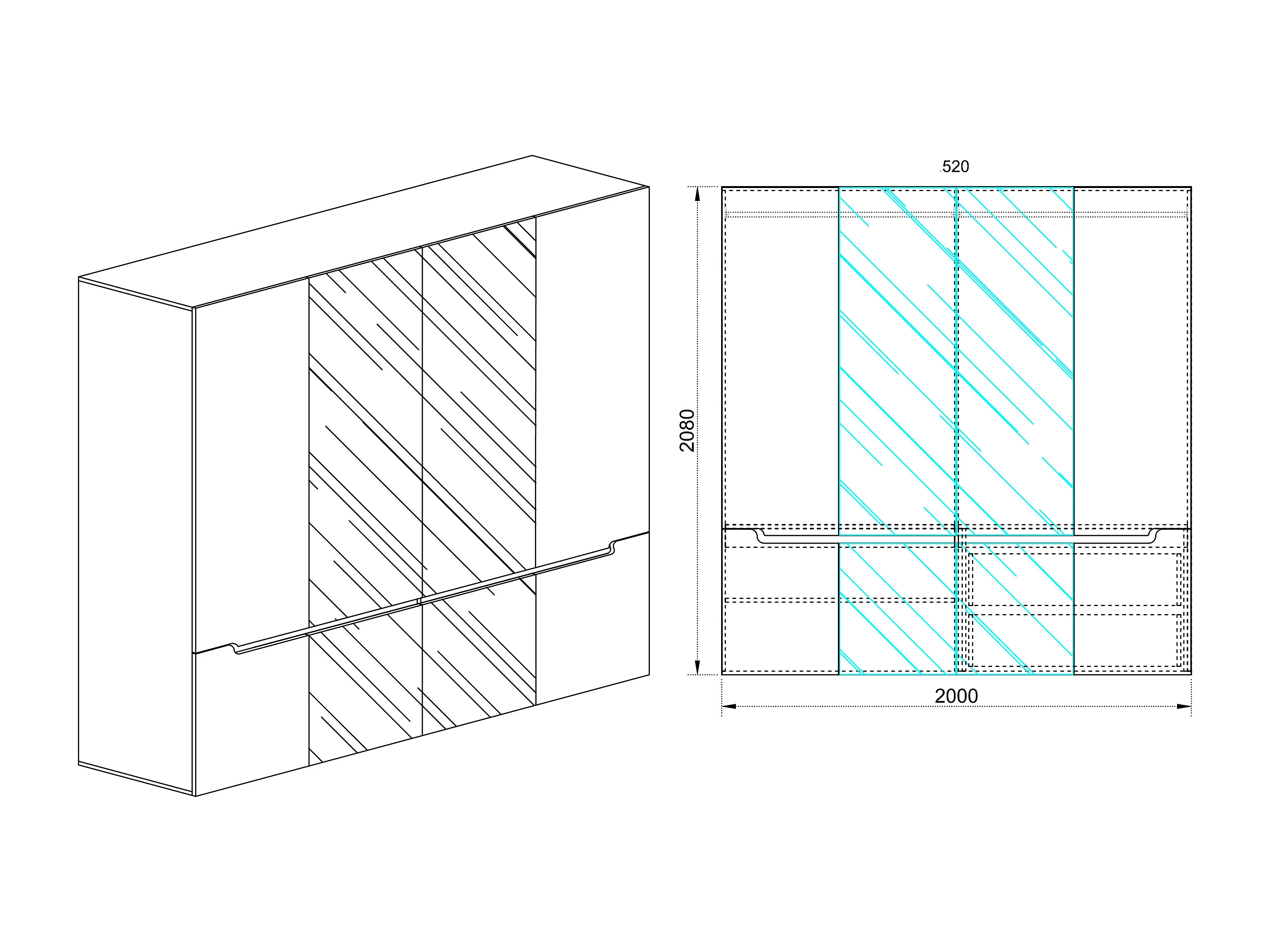 Armadio con quattro ante battenti e con vano contenitore grande 200x208 bianco lucido AI4