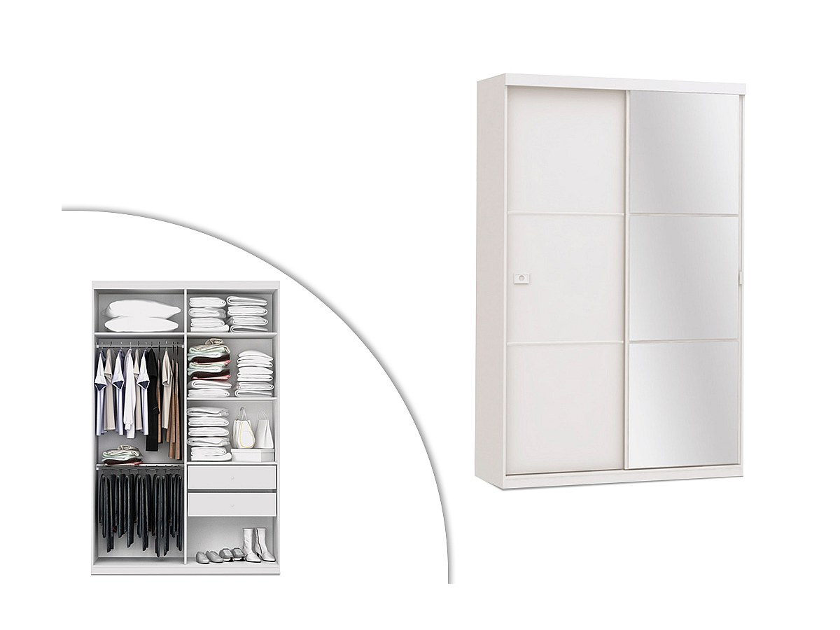 Armadio con specchio 2 ante scorrevoli L.144 cm Bianco - PEGGY