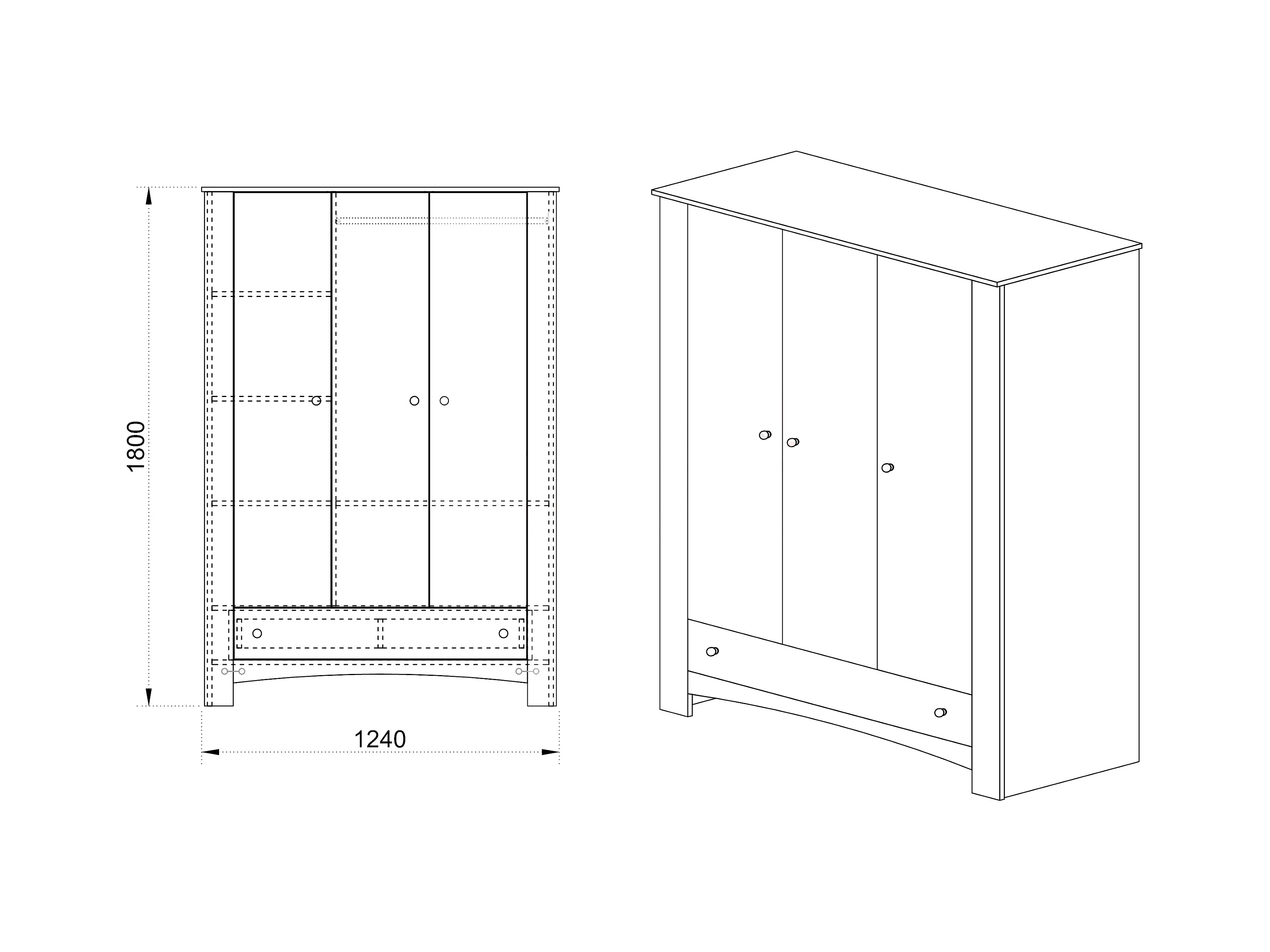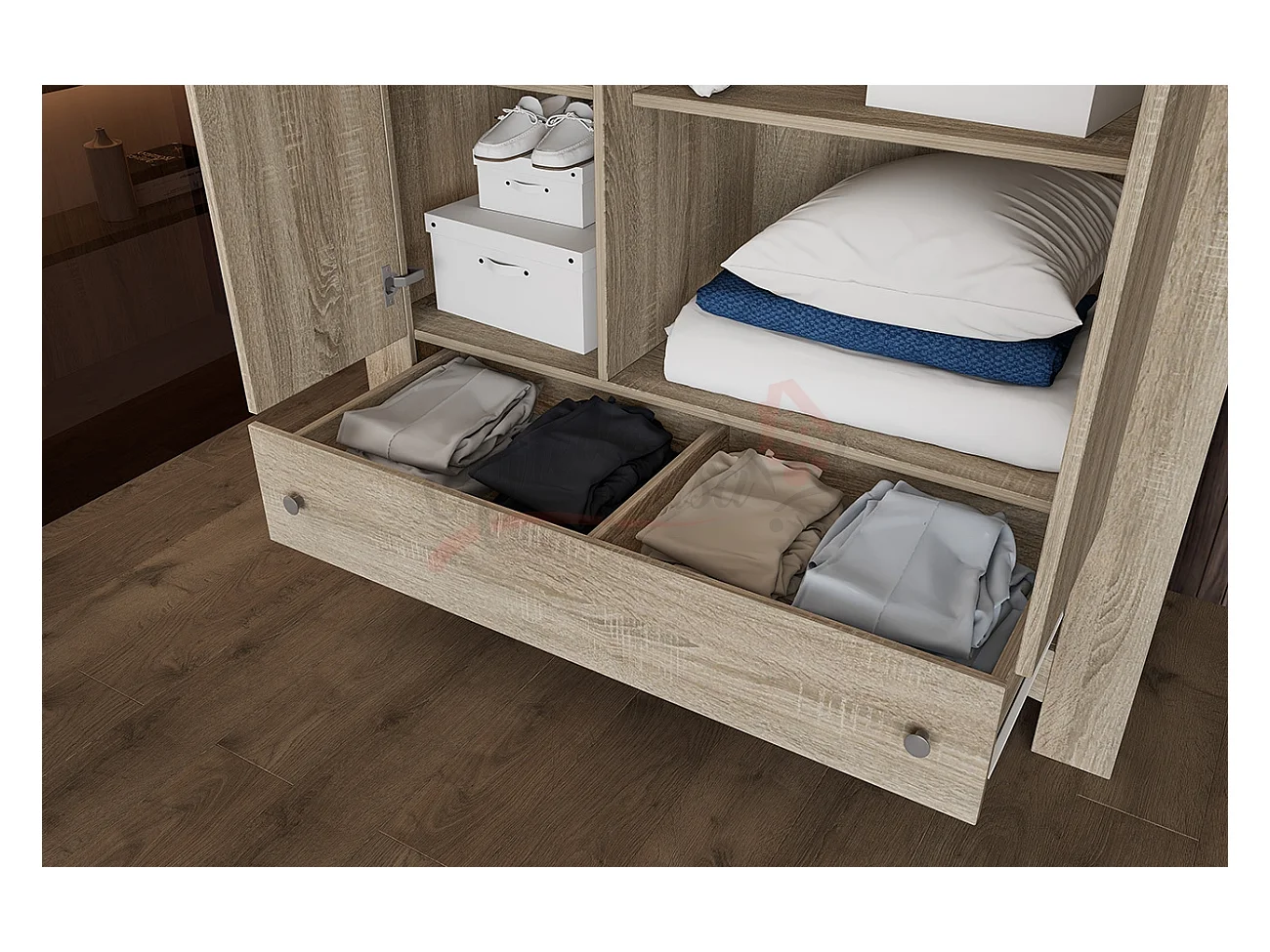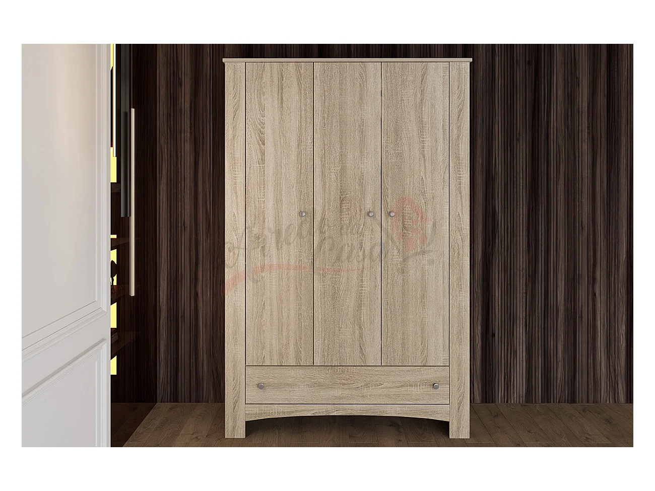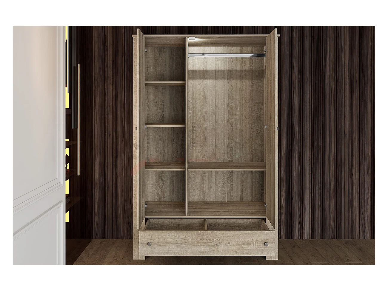 Armadio con tre ante battenti effetto legno stile classico 124x181 rovere scuro AI1016