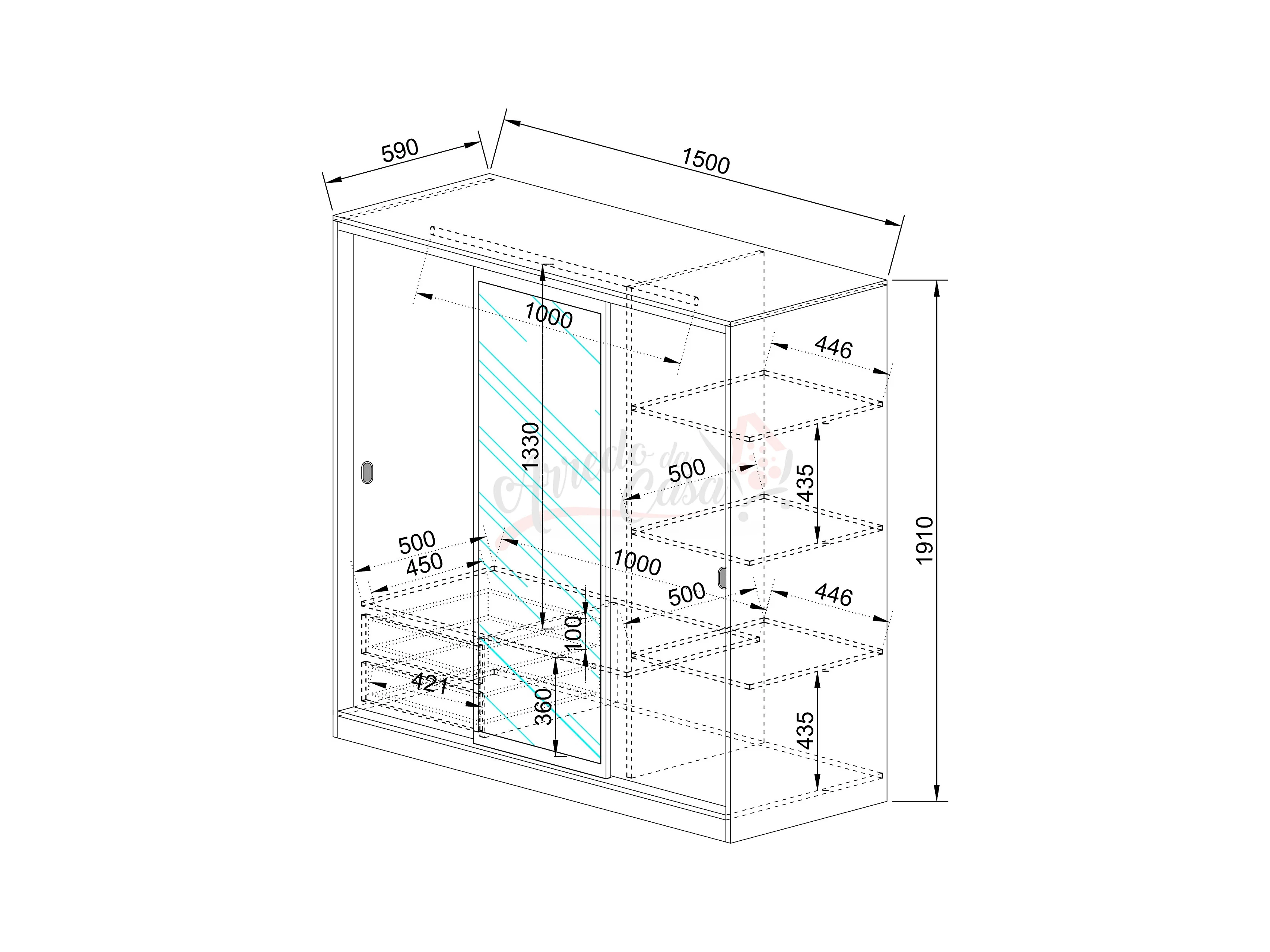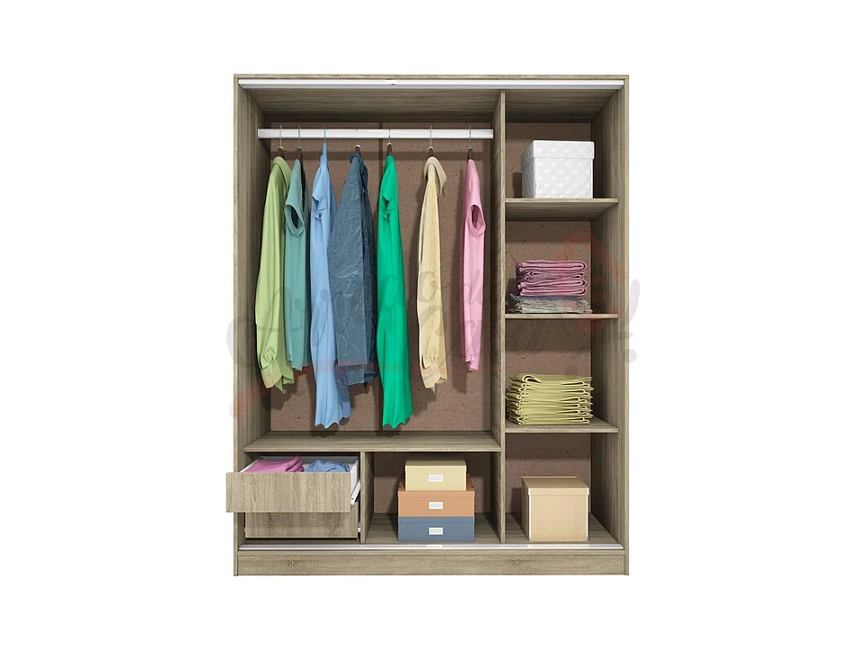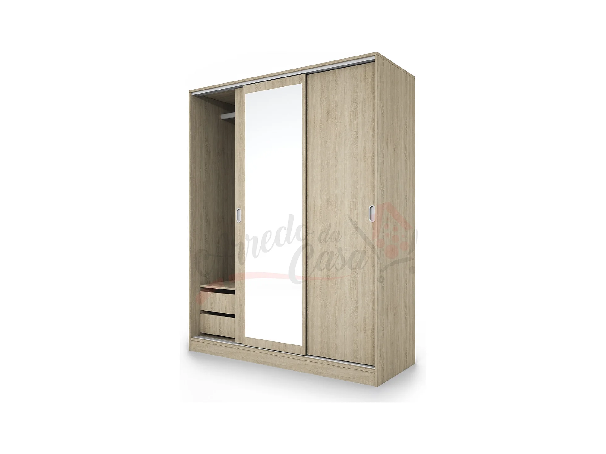 Armadio con tre ante scorrevoli e specchio design moderno effetto legno 150x191 rovere chiaro AI1006