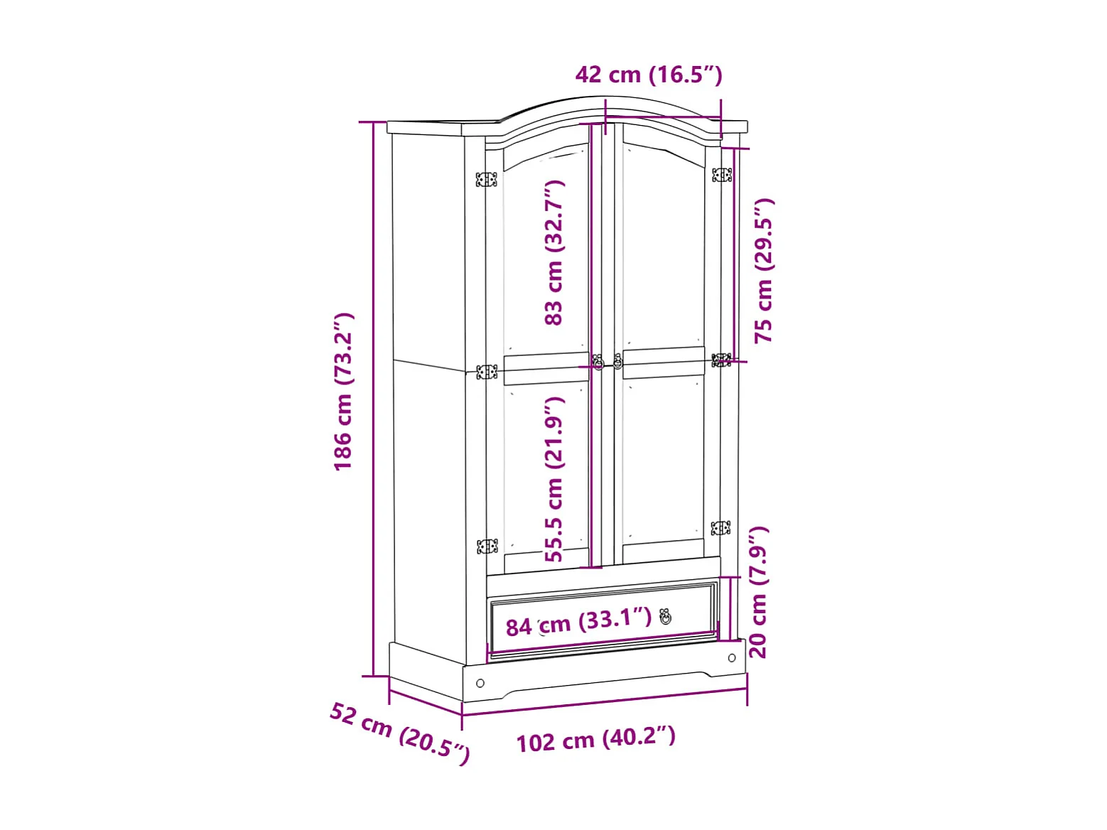 Armadio Corona bianco 194x52x186 cm in legno massello di pino