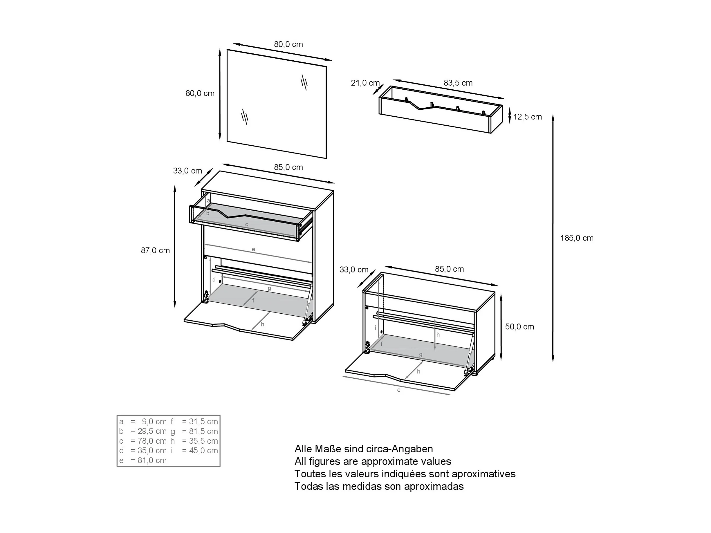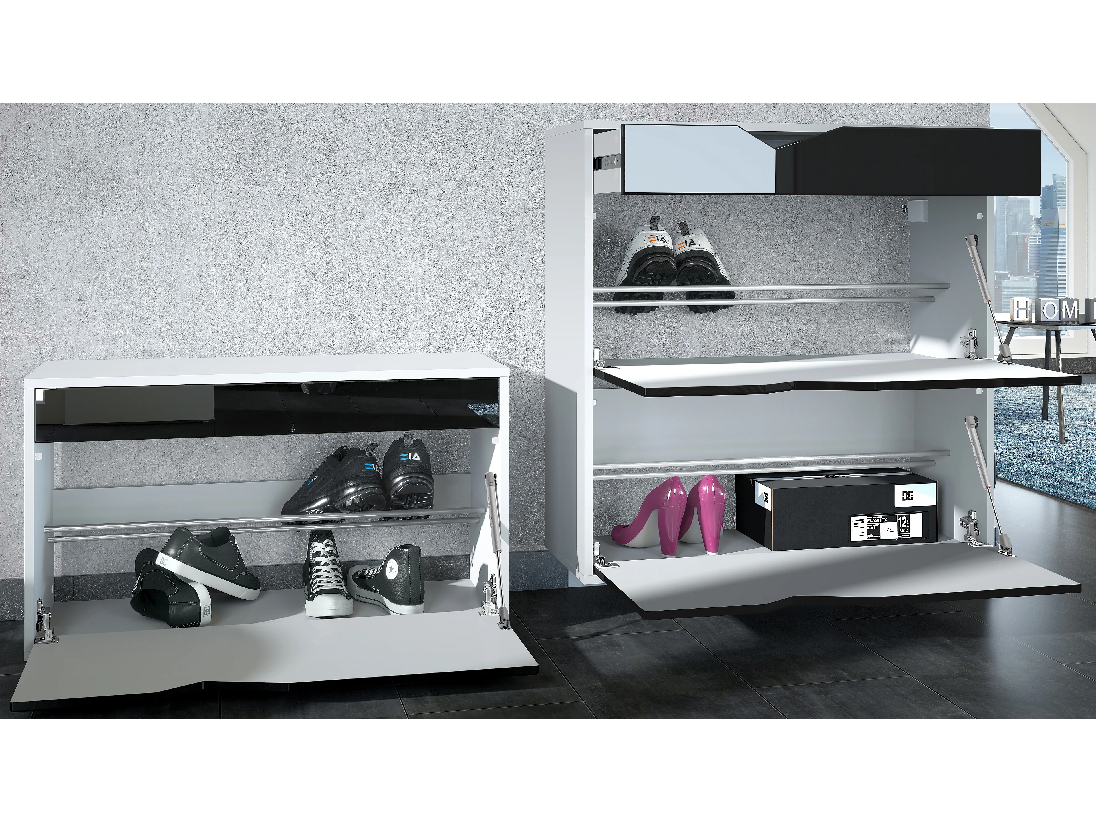 Armadio Corridoio Kolmio 190 x 185 x 33 cm, struttura in bianco opaco, frontali in nero lucido | Vasta scelta di colori