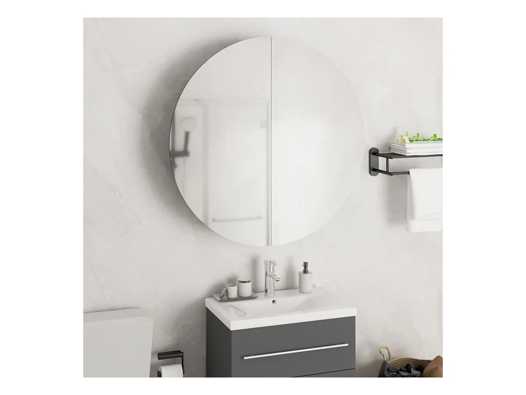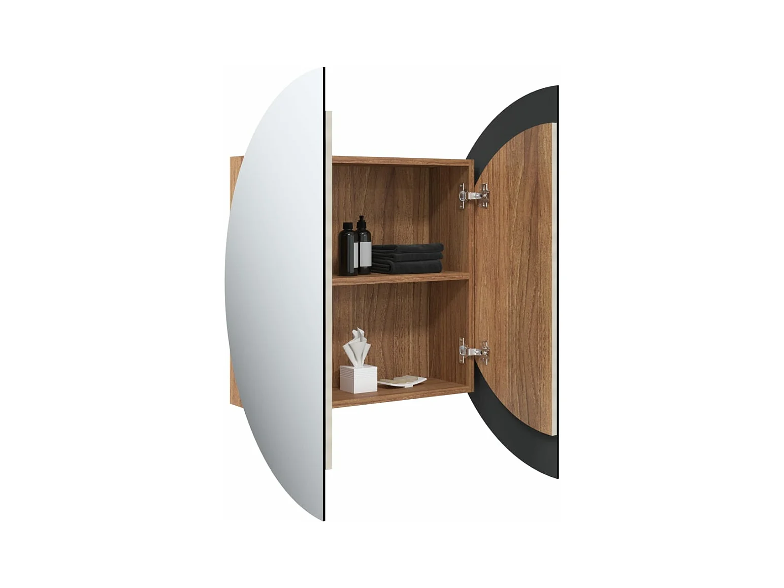 Armadio da Bagno con Specchio Rotondo e LED Rovere 47x47x17,5cm