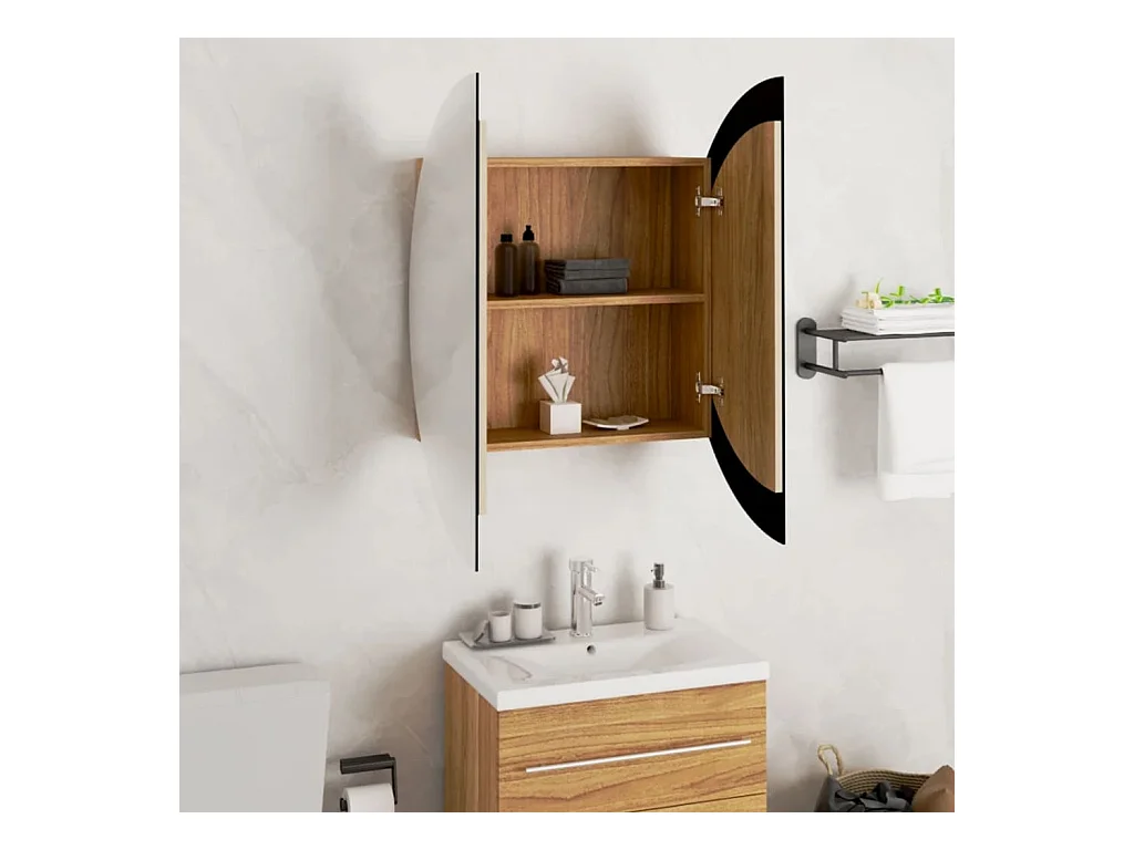 Armadio da Bagno con Specchio Rotondo e LED Rovere 54x54x17,5cm