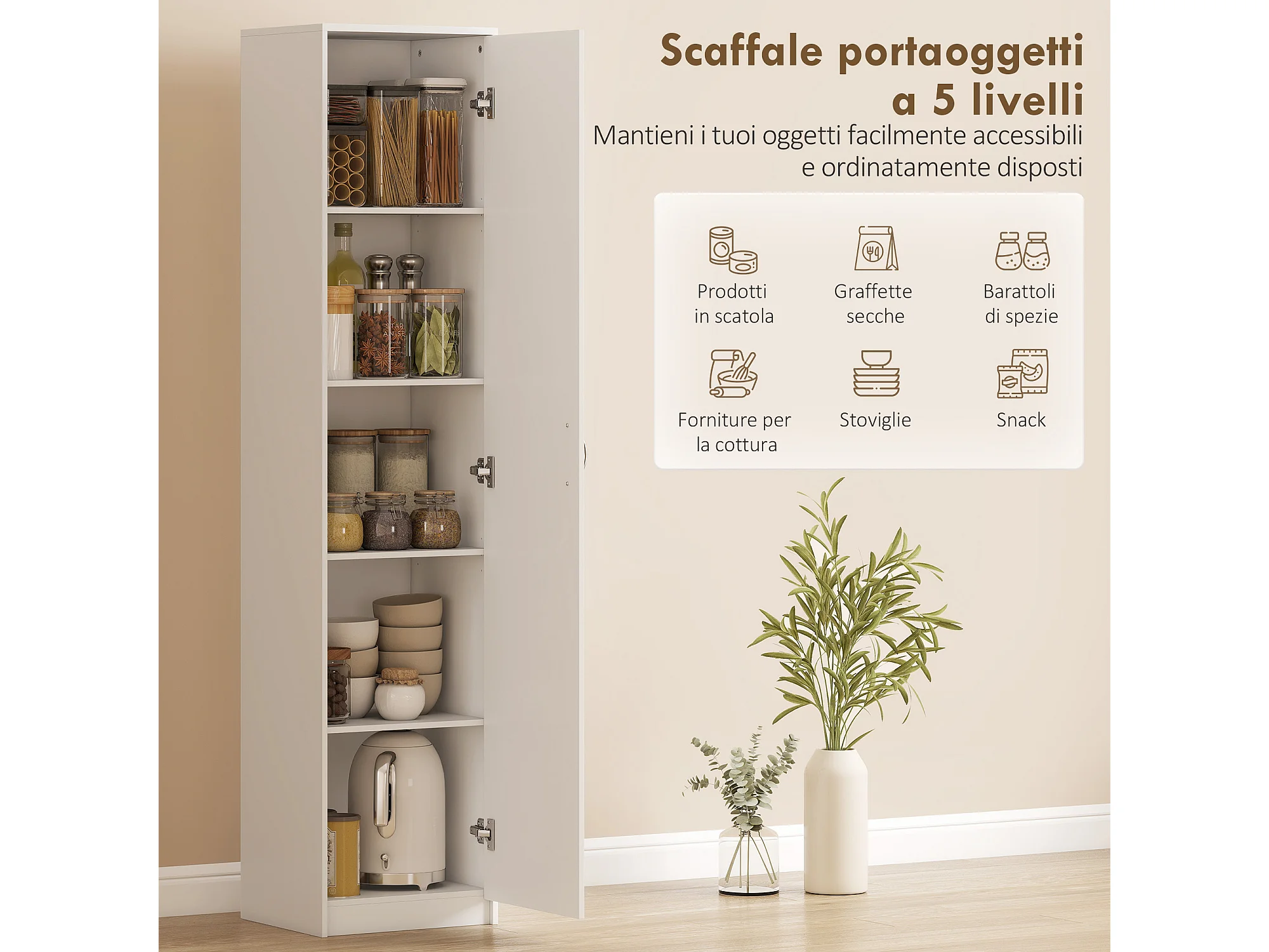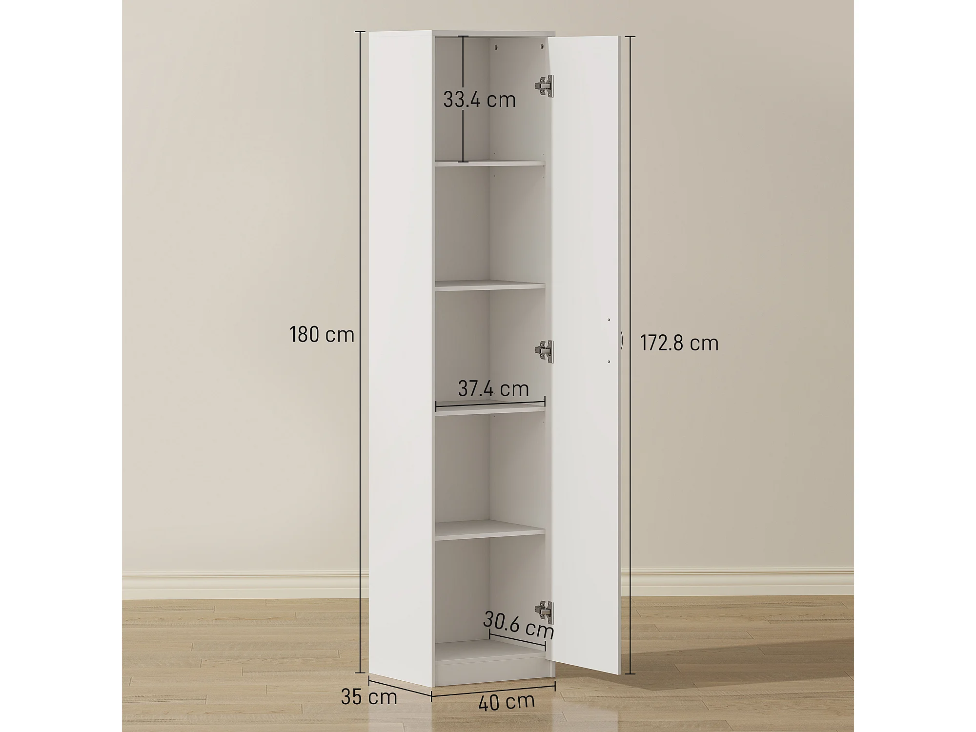 Armadio da cucina a 5 ripiani con spazio regolabile 40x35x180cm bianco