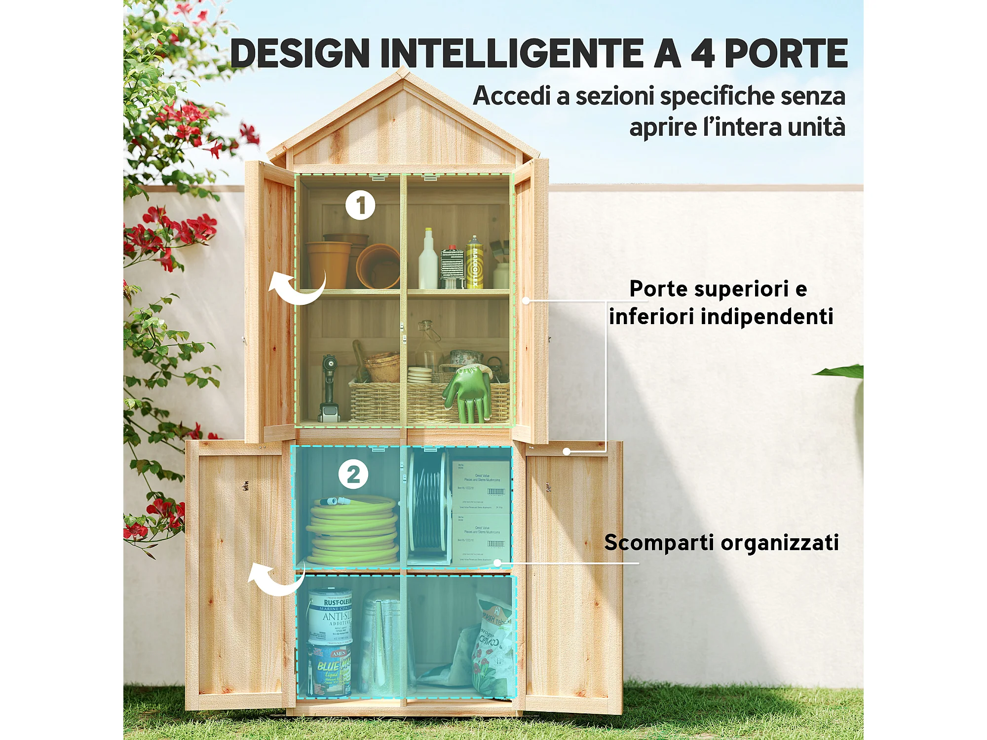 Armadio da esterno 4 ante impermeabile in legno naturale