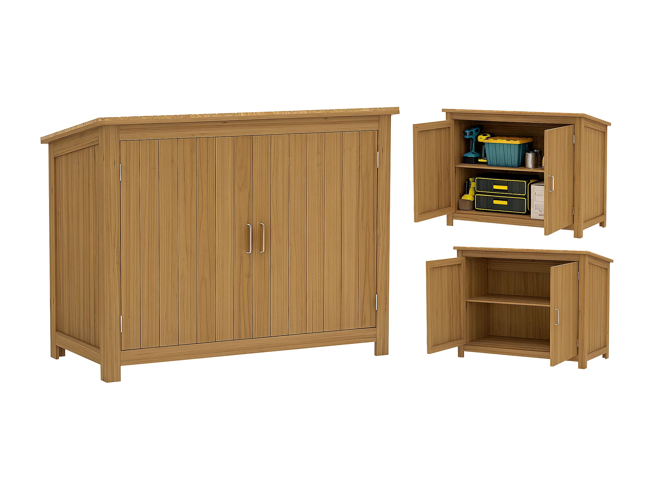 Armadio porta attrezzi da giardino impermeabile a 3 ripiani in legno