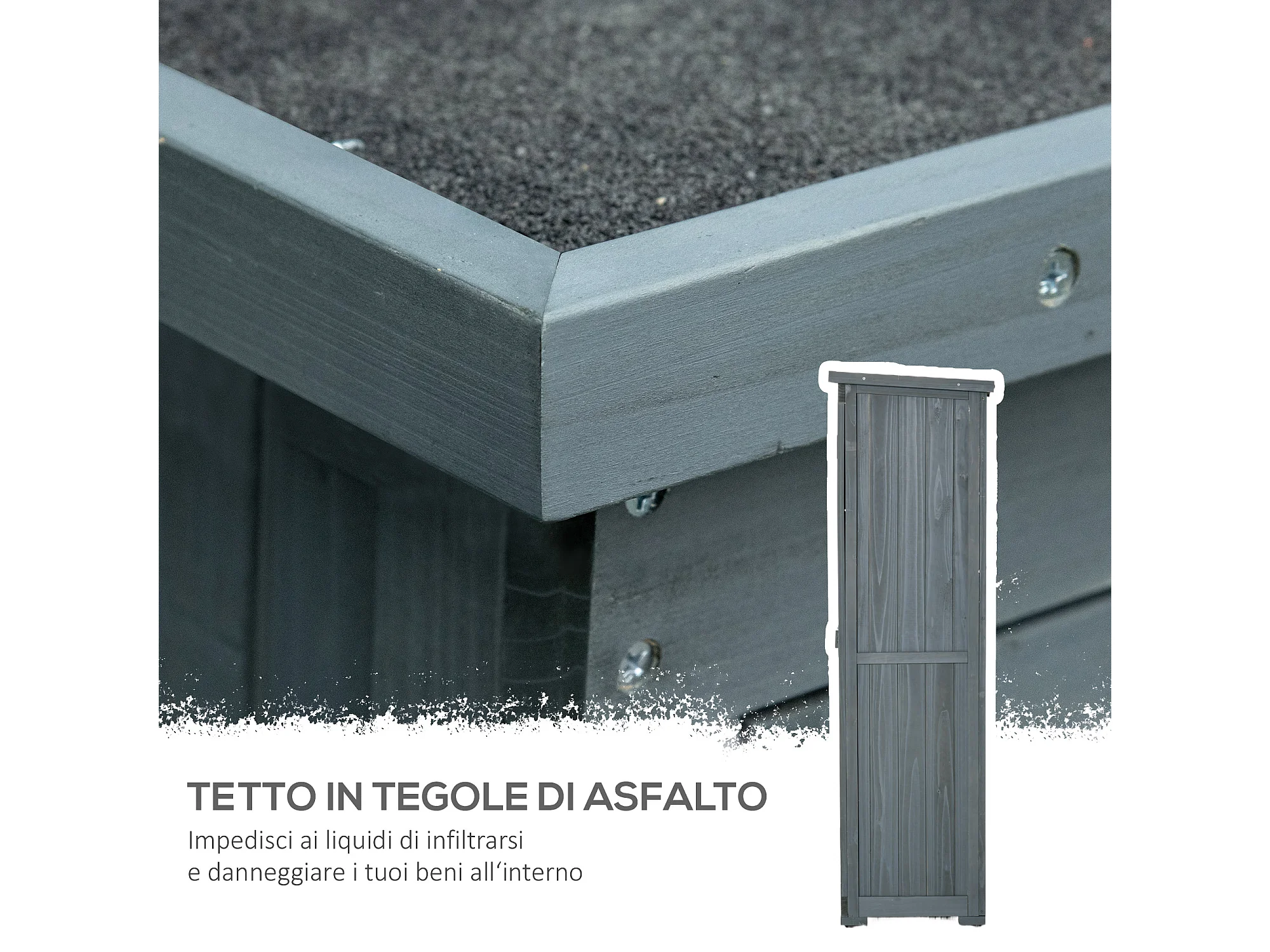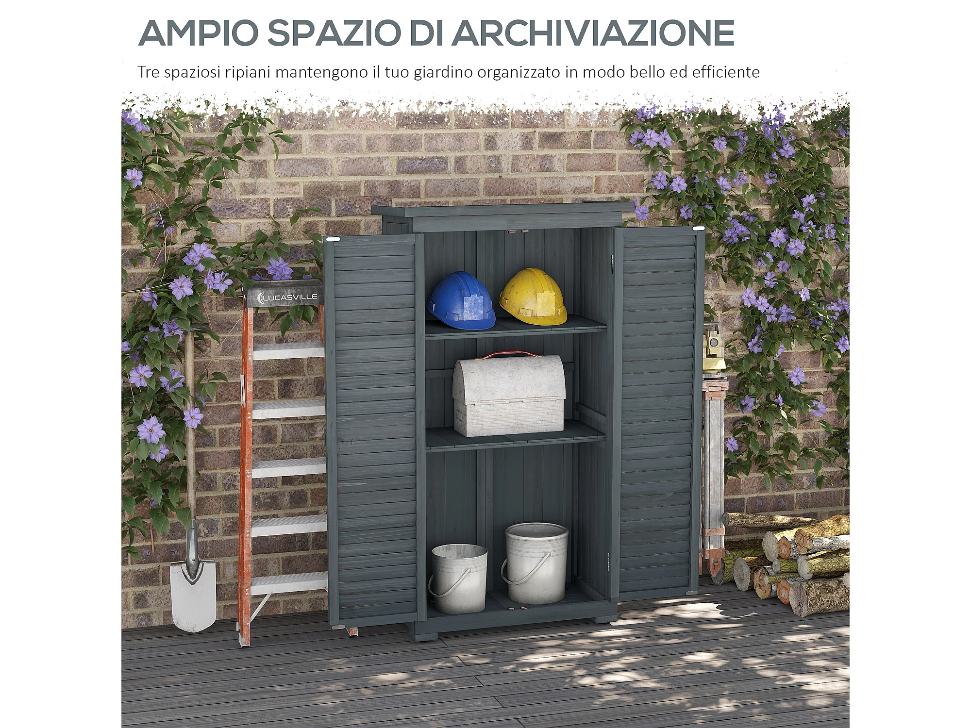 Armadio da esterno con 2 porte e ripiani interni in legno grigio