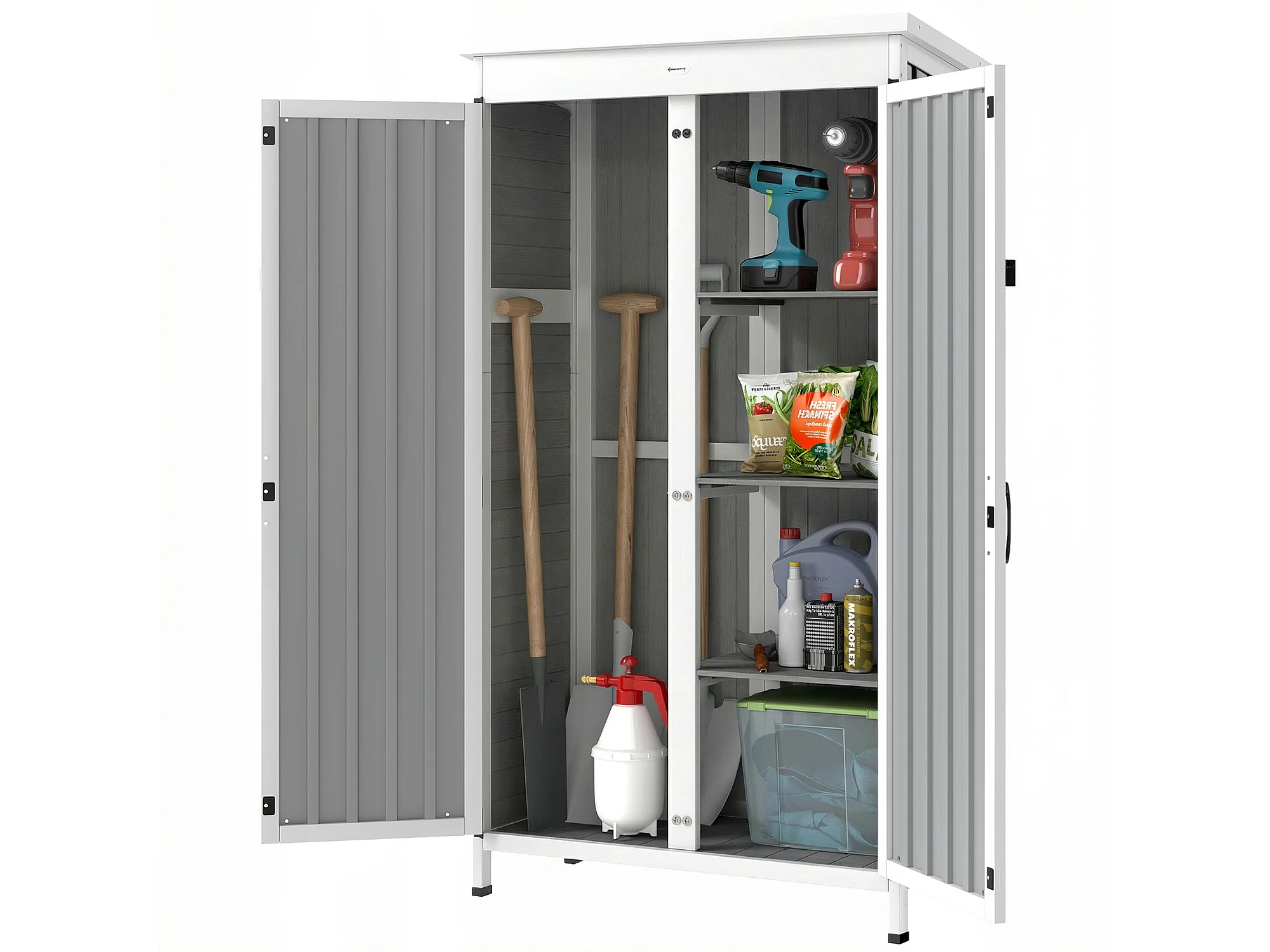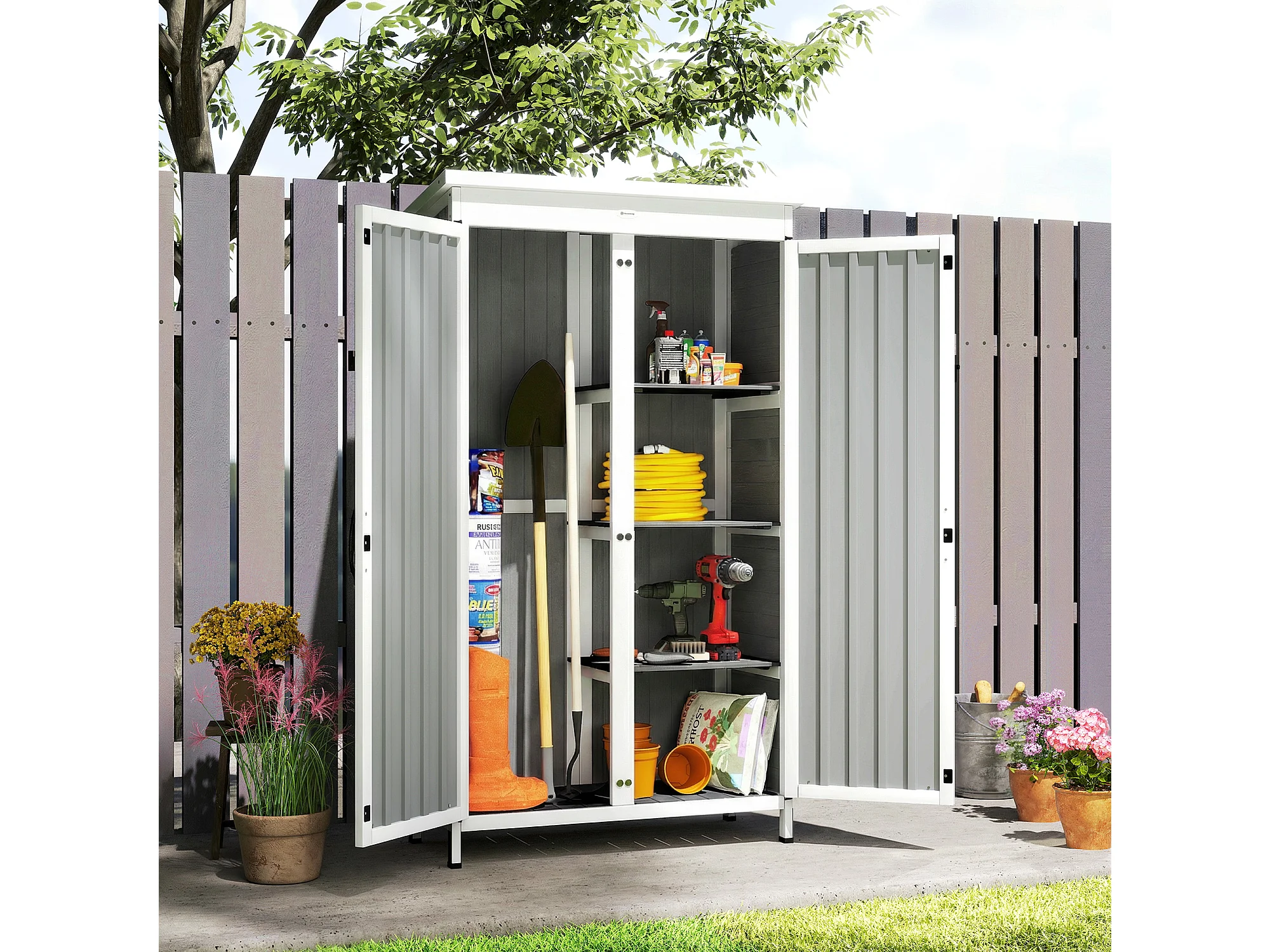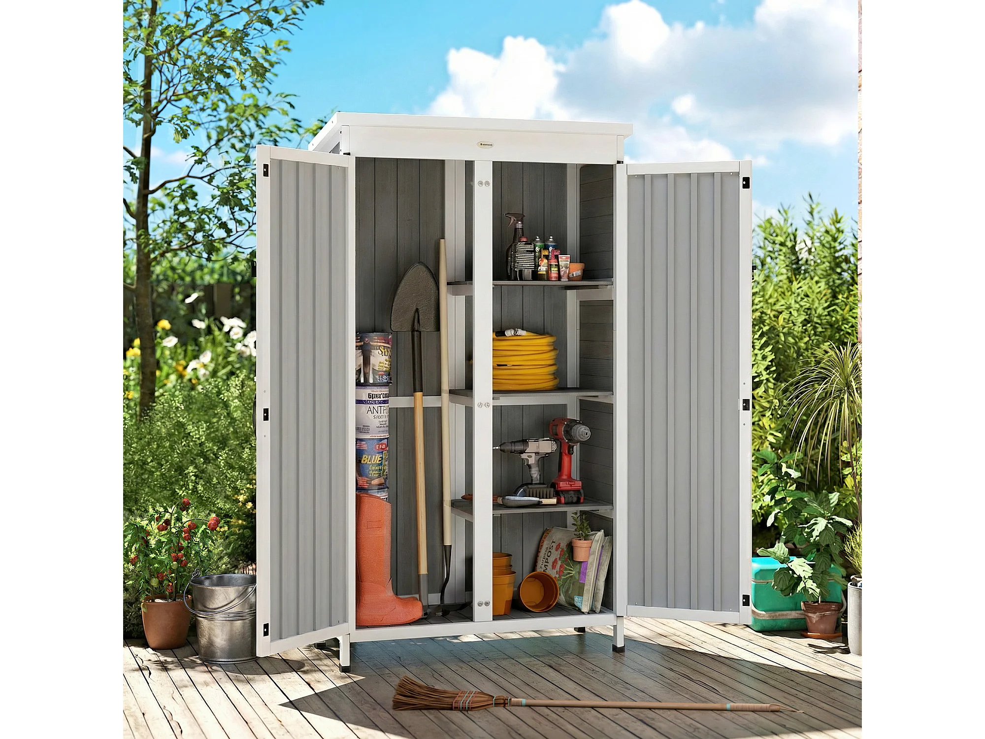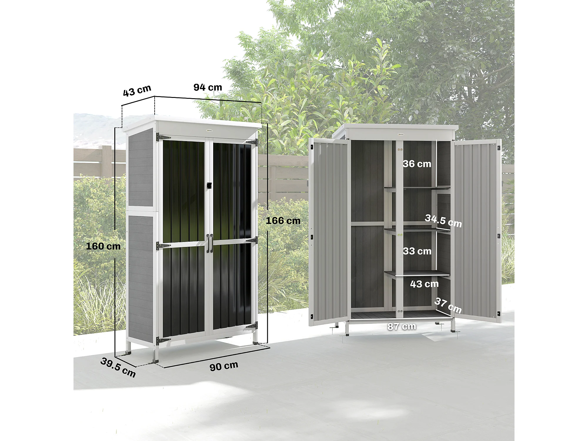 Armadio da esterno con doppia porta in legno bianco e nero