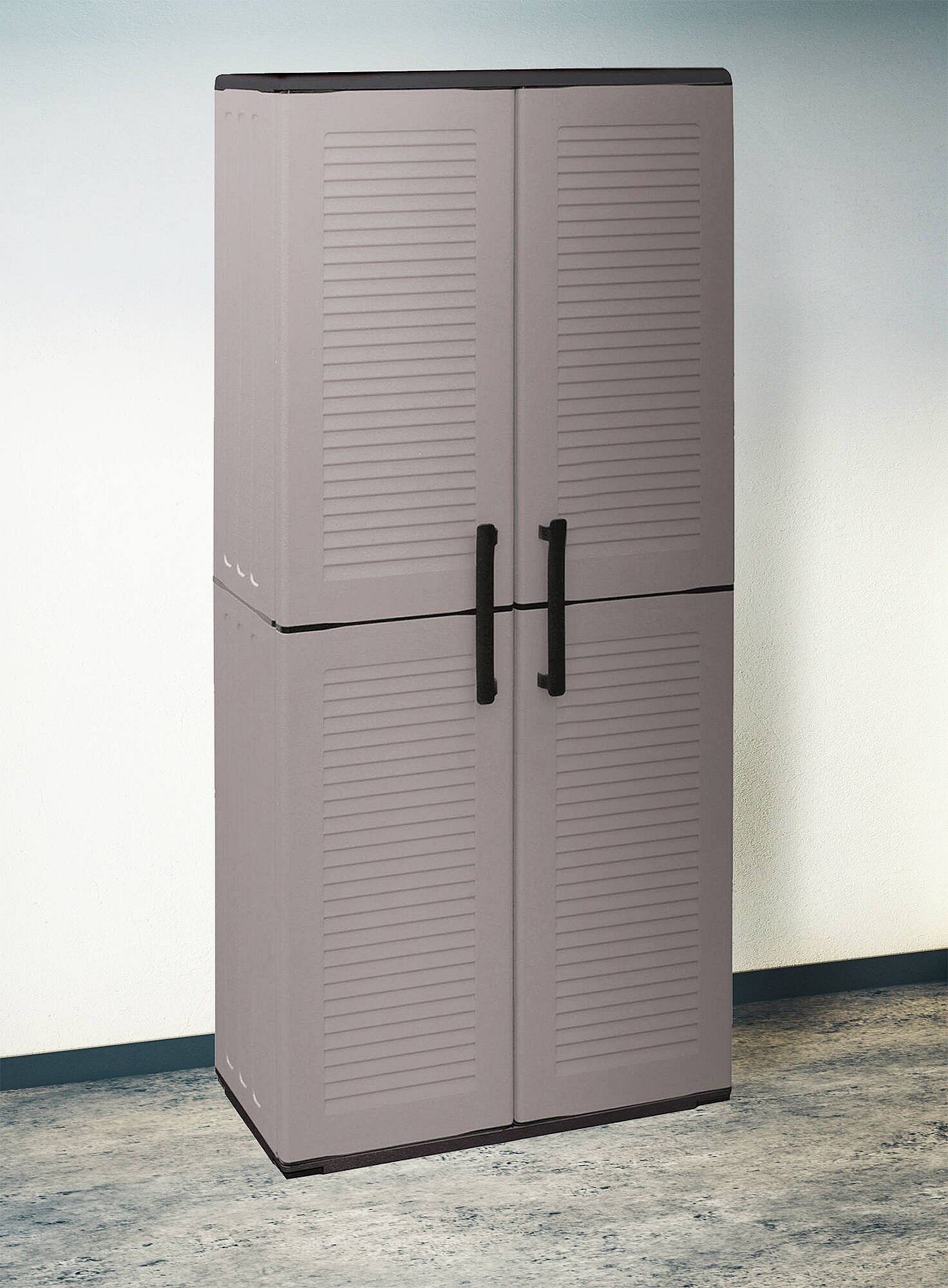 Dmora - Armadio da esterno Akina, Grigio e Nero, Finitura righe