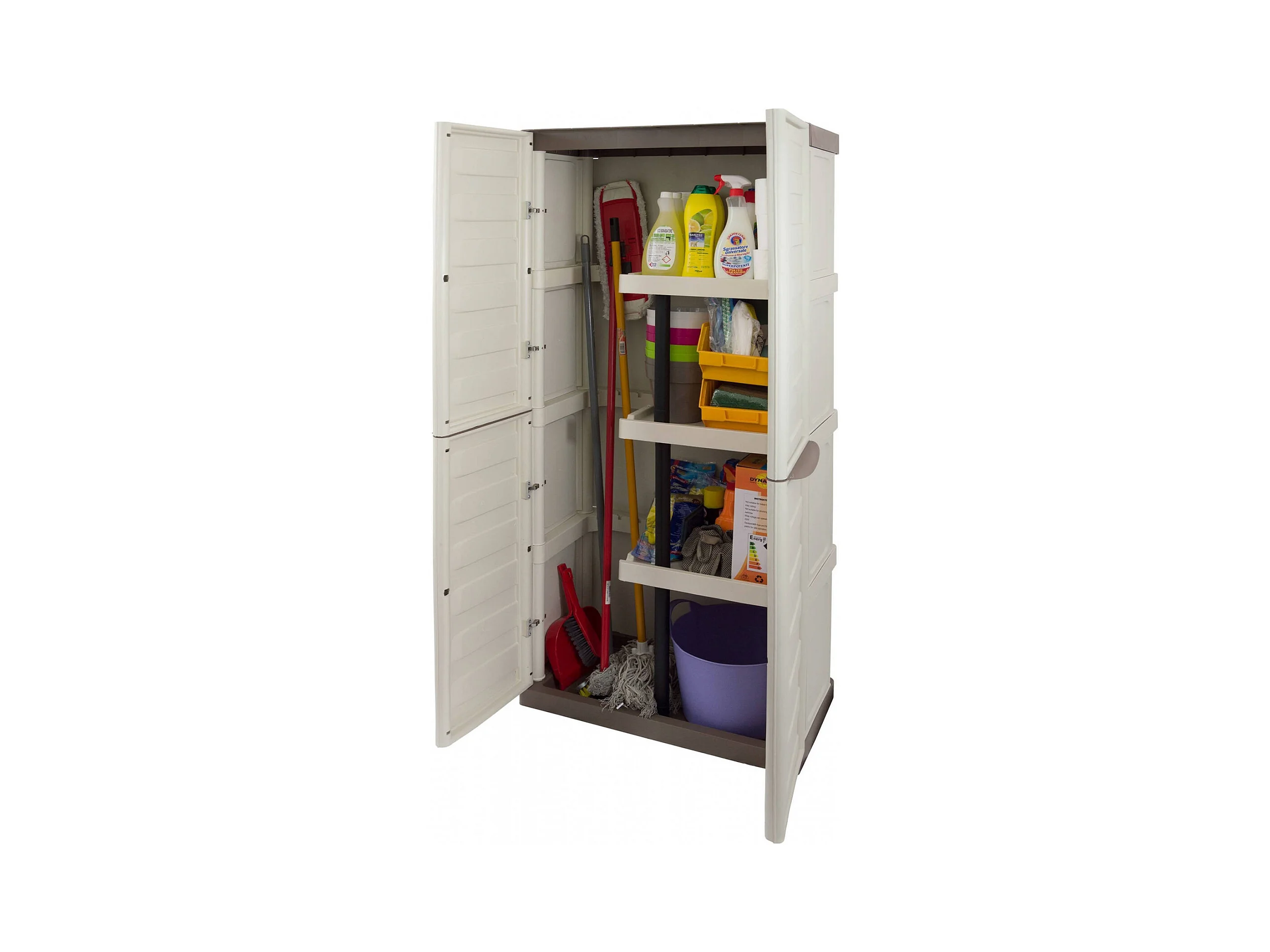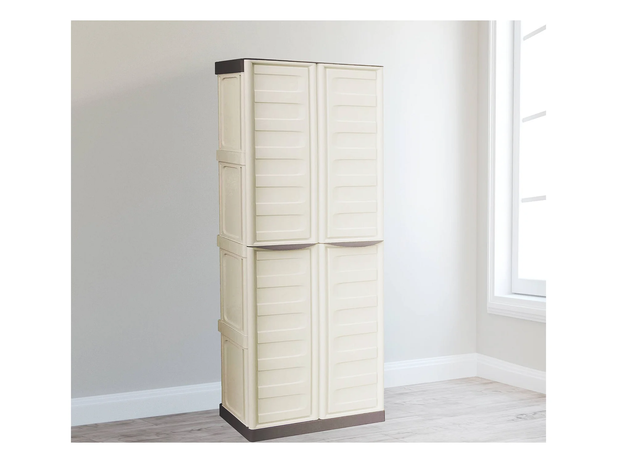 Armadio Alto da Esterno in Resina TITANIUM PLASTIKEN 2 Ante Beige e Taupe 176x70x45cm